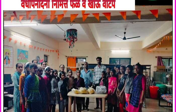 तळेगाव येथील संजीवनी मुलींचे वसतीगृहातील मुलींना छत्रपती शिवाजी महाराज व श्री.म्हसोबा मंदिराच्या प्रथम वर्धापनदिना निमित्त फळे व खाऊ वाटप