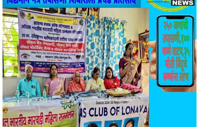 लायन्स क्लब ऑफ लोनावळा व अखिल भारतीय मारवाडी महिला संमेलन लोनावळा यांच्या संयुक्त विद्यमाने नेत्र तपासणी शिबीराला प्रचंड प्रतिसाद