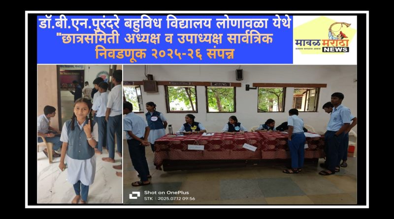 Read moreमावळ मराठा न्युज -लोणावळा, शनिवार,१२ जुलै २०२५ रोजी विद्यालयात सन २०२५-२६ या शैक्षणिक वर्षाकरिता छात्रसमिती अध्यक्ष व उपाध्यक्ष पदाची निवडणूक