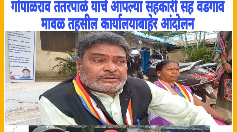 गोपाळराव तंतरपाळे यांचे आपल्या सहकारी सह वडगाव मावळ तहसील कार्यालयाबाहेर आंदोलन