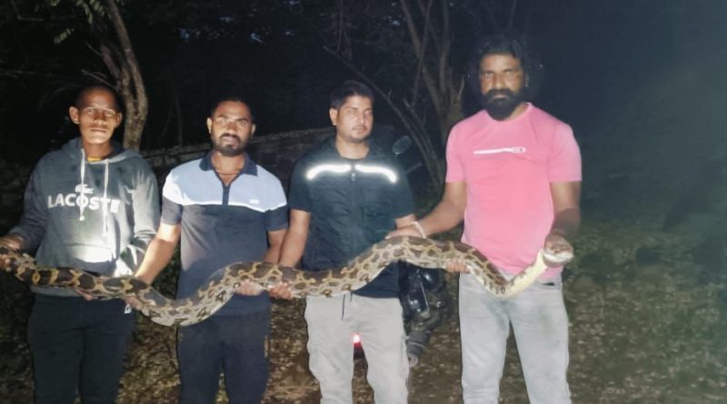 इंडीयन रॉक पायथन जातीचा अजगर वन्यजीव रक्षक मावळ संस्थेच्या मदतीने सुखरूप जंगलात सोडला