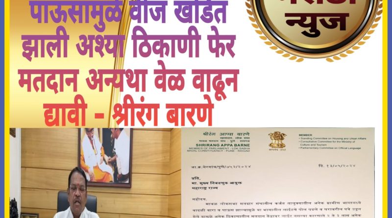 मावळ लोकसभेतील कर्जत तालुक्यात वादळी वारा पाऊसामुळे वीज खंडित झाली अश्या ठिकाणी फेर मतदान अन्यथा वेळ वाढून द्यावी – श्रीरंग बारणे