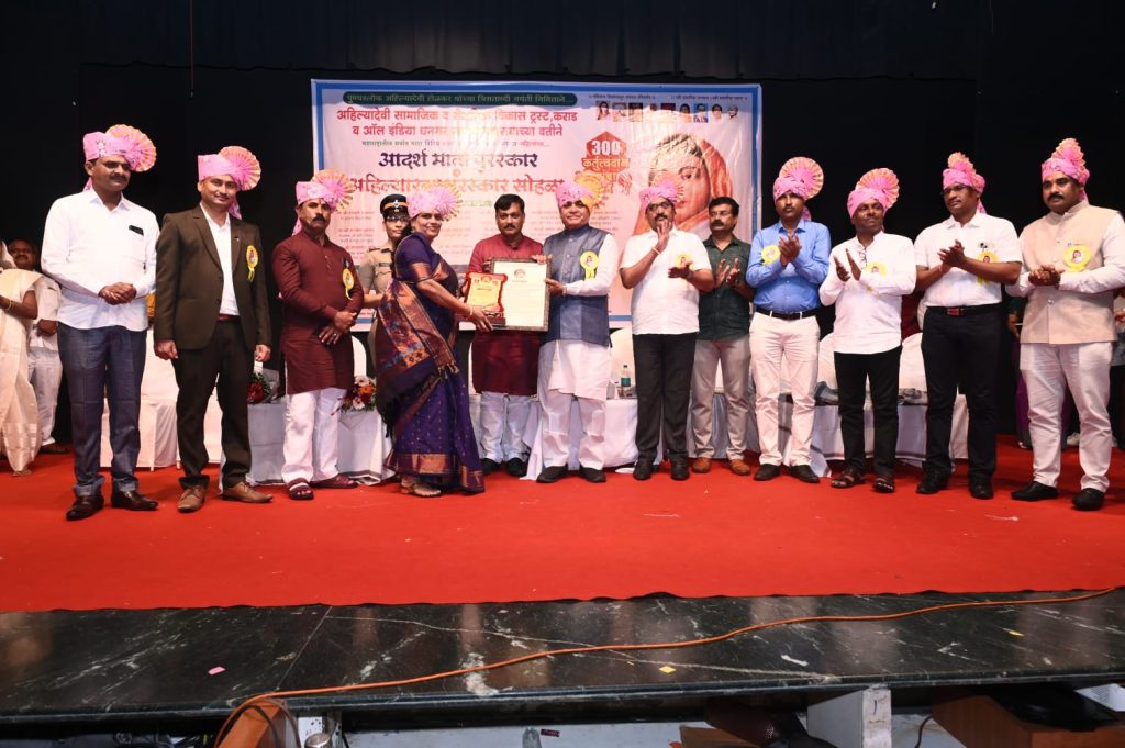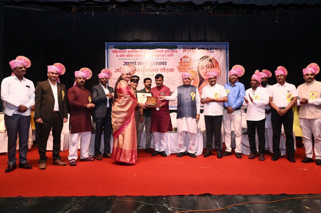 मावळ मराठा न्युज-लोणावळा,लोणावळा नगरपालिका शिक्षण विभागातील शाळा क्रमांक ६च्या मुख्याध्यापिका श्रीमती नंदा विजय तांदळे यांना नुकताच अहिल्या रत्न पुरस्कार मिळाला. अहिल्यादेवी सामाजिक व शैक्षणिक विकास ट्रस्ट कराड व ऑल इंडिया धनगर समाज महासंघाच्या वतीने पुण्यश्लोक अहिल्यादेवी होळकर यांच्या त्रिशताब्दी जयंती निमित्त महाराष्ट्रातील सामाजिक,शैक्षणिक व आरोग्य, विभागातील कर्तुत्ववान ३०० महिलांना अहिल्या रत्न पुरस्कार सोहळा दिनांक ७/९/२०२५ रोजी साहित्य मंदिर सभागृह वाशी नवी मुंबई येथे संपन्न झाला. याप्रसंगी श्रीराम हरी रुपनर (मा. सदस्य विधान परिषद) सन्माननीय श्री विश्वास मोठे (उप आयुक्त मुंबई महानगरपालिका) माननीय श्री सचिन मोटे (आयकर आयुक्त मुंबई) माननीय श्री संजय वाघमोडे (विभागीय वन अधिकारी दक्षता कोल्हापूर) माननीय श्री उल्हास वाघमोडे साहेब (भूमी अभिलेख अधिकारी मुंबई) या कार्यक्रमाचे प्रमुख संयोजक सन्माननीय श्री प्रवीण काकडे साहेब (महाराष्ट्र प्रदेश अध्यक्ष ऑल इंडिया धनगर समाज महासंघ दिल्ली संस्थापक अध्यक्ष) यांच्या उपस्थितीत हा कार्यक्रम सोहळा पार पडला महाराष्ट्रातील ३०० महिलांच्या पैकी आपल्या लोणावळ्यातून सामाजिक क्षेत्रात कर्तृत्ववान काम केल्याबद्दल सौ कल्पना झोरे यांना पुरस्कार मिळाला तसेच शैक्षणिक क्षेत्रात उल्लेखनीय काम केल्याबद्दल श्रीमती नंदा विजय तांदळे यांना अहिल्या रत्न पुरस्कार देण्यात आला.मावळ मराठा न्यूज परिवार कडून त्यांचे मनापासून अभिनंदन.