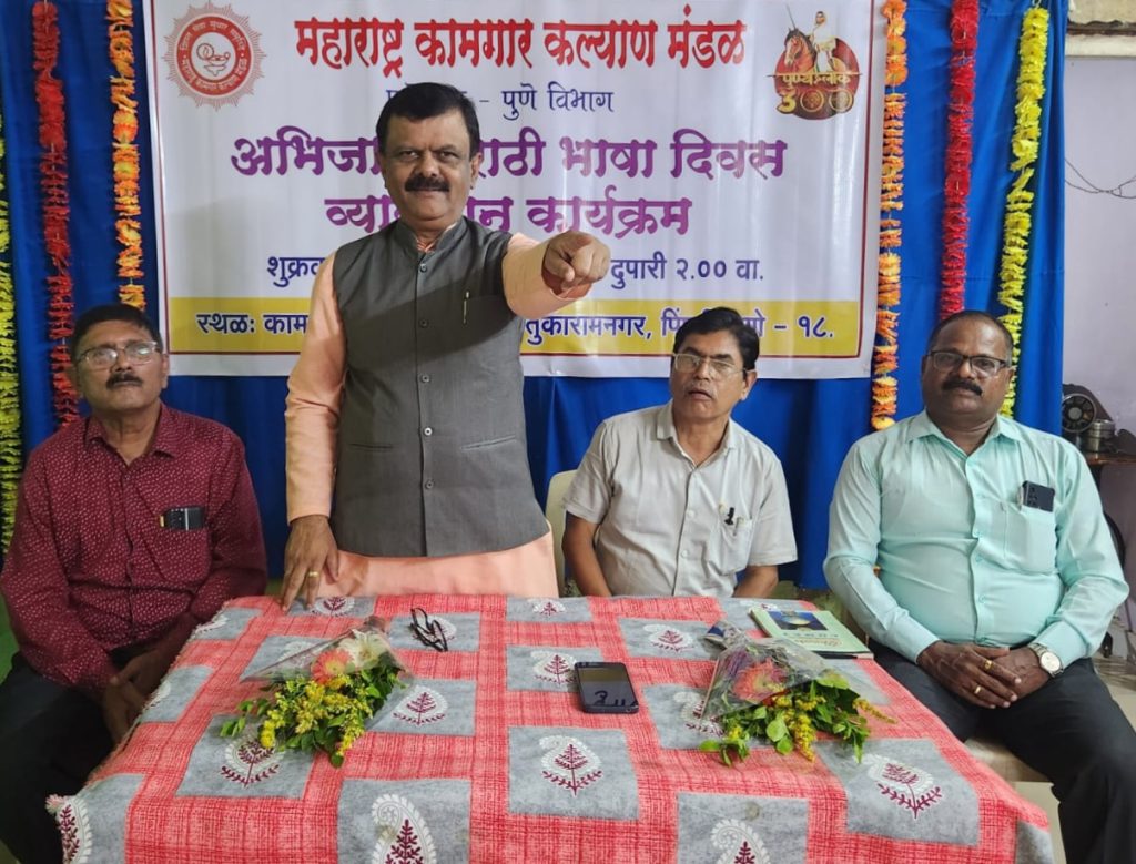 मावळ मराठा न्युज -पिंपरी : -माय मराठीला समृद्ध असा वारसा लाभलेला आहे. प्राचीनता, श्रेष्ठता, स्वयंभूपणा आणि सलगता या निकषावर अभिजात दर्जा मिळाला आहे. व्यवहारात आपाल्या भाषेचा जाणीवपूर्वक वापर करून तिचे संवर्धन करण्याची जबाबदारी आपल्या सर्वांची आहे.” असे प्रतिपादन जेष्ठ साहित्यिक व व्याख्याते राजेंद्र घावटे यांनी केले आहे.संत तुकाराम नगर पिंपरी येथे महाराष्ट्र कामगार कल्याण मंडळाच्या वतीने आभिजात मराठी भाषा दिन साजरा करण्यात आला. या प्रसंगी “मराठी भाषा काल-आज-उद्या” या विषयावर व्याख्यानपुष्प गुंफताना ते बोलत होते.जेष्ठ साहित्यिक मा. सुरेश कंक हे कार्यक्रमाच्या अध्यक्षस्थानी होते. मानवी हक्क व जागृती चे अध्यक्ष अण्णा जोगदंड प्रमुख पाहुणे म्हणून उपस्थित होते. मुख्य संयोजक केंद्रप्रमुख अनिल कारळे यांनी प्रास्ताविक केले.श्री. घावटे पुढे म्हणाले की, ” ज्ञानेश्वरांच्या ज्ञानेश्वरीचा मुकुट ल्यालेली , तुकोबांच्या गाथेचा मळवट भाळी भरलेली, नामदेवांच्या कीर्तनाचा शालू पांघरलेली , एकनाथांच्या भागवताची पैठणी नेसलेली अशी ही माय मराठी ! सकल संतांच्या पंक्तीने अलंकृत आहे. राष्ट्रपुरुष व समाजधुरीण यांच्या कार्याचा वारसा जोपासणारी आणि शिवरायांच्या स्वराज्याची पताका खांद्यावर घेऊन ती डौललदारपणे वर्षानुवर्ष भारत वर्षामध्ये वावरते आहे.मराठी भाषेला शासनदरबारी अभिजात दर्जा मिळणं ही खऱ्या अर्थाने अभिमानाची गोष्ट आहे. बारा कोटी लोकांची मातृभाषा असणारी मराठी ही खऱ्या अर्थाने एक समृद्ध भाषा आहे. अभिजात दर्जा मिळाल्यामुळे भाषेचा प्रसार आणि प्रचार जास्त जोमाने होईल. आपण व्यवहारात मराठी चा वापर आवर्जून केलाच पाहिजे. मराठी भाषा जोपासत ती वृद्धिंगत करण्याचा संकल्प अभिजात भाषा दिनाच्या निमित्ताने करू यात !”आपल्या अध्यक्षीय भाषणात सुरेश कंक म्हणाले की, “अभिजात दर्जा मिळण्यासाठी शहरातील साहित्यिकांनी लक्षणिक उपोषण केले, पथनाट्यातुन जनजागृती केली . सर्वांच्या प्रयत्नामुळे आपल्या मराठी भाषेला अभिजात भाषेचा दर्जा मिळाला आहे सार्थ अभिमान आहे.”प्रमुख पाहुणे अण्णा जोगदंड म्हणाले की “भाषेला अभिजात दर्जा मिळण्यासाठी हजारो वर्षाची परंपरा असावी लागते. अभिजात दर्जा मिळाल्यामुळे जागतिक स्तरावर भाषेचे महत्त्व वाढले आहे. प्राचीनता, स्वयंभूपना अशा सर्व निकषांमध्ये मराठी भाषा बसली आहे.”सुरेखा मोरे ,संगीता क्षीरसागर ,शैलजा आवडे ,प्रतिभा गोसावी ,सोनल बोबले ,ऐश्वर्या गायकवाड ,निशा भोसले, जयश्री आडसूळ, पल्लवी डावकर यांनी संयोजन केले.केंद्राचालक अनिल कारळे यांनी सूत्रसंचालन केले.