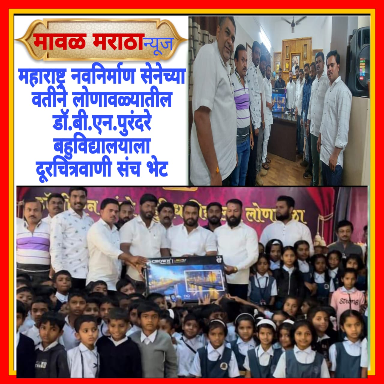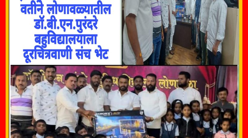 महाराष्ट्र नवनिर्माण सेनेच्या वतीने लोणावळ्यातील डॉ.बी.एन.पुरंदरे बहुविद्यालयाला दूरचित्रवाणी संच भेट