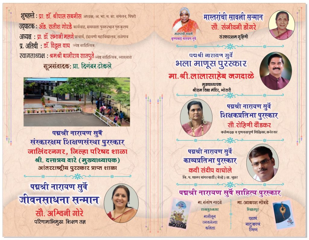 मावळ मराठा न्युज -पिंपरी,(प्रदीप गांधलीकर) दिनांक : १५ जानेवारी २०२६ नारायण सुर्वे साहित्य कला अकादमीच्या वतीने शनिवार, दिनांक १७ जानेवारी २०२६ रोजी सकाळी ठीक १०:३० वाजता जिल्हा परिषद शाळा, जालिंदरनगर, कणेसरजवळ, तालुका खेड, जिल्हा पुणे येथे एकदिवसीय पद्मश्री नारायण सुर्वे काव्यजागर संमेलनाचे आयोजन करण्यात आले आहे. पद्मश्री नारायण सुर्वे जन्मशताब्दी सोहळ्यानिमित्त या चौथ्या पुष्पाचे उद्घाटन ज्येष्ठ विधिज्ञ अॅड. सतीश गोरडे यांच्या हस्ते करण्यात येणार असून ८९ अखिल भारतीय मराठी साहित्य संमेलनाचे अध्यक्ष डॉ. श्रीपाल सबनीस यांच्या शुभहस्ते तसेच प्राचार्य डॉ. संभाजी मलघे यांच्या अध्यक्षतेखाली आणि ज्येष्ठ साहित्यिक डॉ. विठ्ठल वाघ यांच्या प्रमुख उपस्थितीत पुरस्कार प्रदानसोहळा व काव्यजागर संमेलन संपन्न होईल. ज्येष्ठ साहित्यिक श्रमश्री बाजीराव सातपुते संमेलनाचे स्वागताध्यक्ष आहेत. संमेलनात जालिंदरनगर येथील जिल्हा परिषद शाळेला पद्मश्री नारायण सुर्वे संस्कारक्षम शिक्षण संस्था पुरस्काराने गौरविण्यात येणार आहे. त्याचबरोबर शिक्षणतज्ज्ञ अश्विनी गोरे (पद्मश्री नारायण सुर्वे जीवनसाधना सन्मान), संस्कारक्षम गृहिणी संजीवनी डोंगरे (मास्तरांची सावली – कृष्णाबाई सुर्वे सन्मान), मुख्याध्यापक लालासाहेब जगदाळे (पद्मश्री नारायण सुर्वे भला माणूस पुरस्कार), शिक्षिका रोहिणी दौंडकर (पद्मश्री नारायण सुर्वे शिक्षकप्रतिभा पुरस्कार), कवी संदीप वाघोले (पद्मश्री नारायण सुर्वे काव्यप्रतिभा पुरस्कार) यांना प्रदान करून गौरविण्यात येणार असून संतोष गाढवे आणि आकाश भोरडे यांना पद्मश्री नारायण सुर्वे साहित्य पुरस्काराने सन्मानित करण्यात येणार आहे. याप्रसंगी राजेंद्र वाघ, मानसी चिटणीस, संगीता झिंजुरके, मधुकर गिलबिले, जयश्री श्रीखंडे, प्रतिमा काळे, मीनाक्षी पाटोळे, नीलम जेजुरकर, प्रभाकर वाघाले, कुमार खोंद्रे आणि रजनी कानडे हे निमंत्रित कवी काव्यजागर करतील. नि:शुल्क असलेल्या या संमेलनाचा सर्वांनी आवर्जून लाभ घ्यावा, असे आवाहन बाजीराव सातपुते यांनी केले आहे.