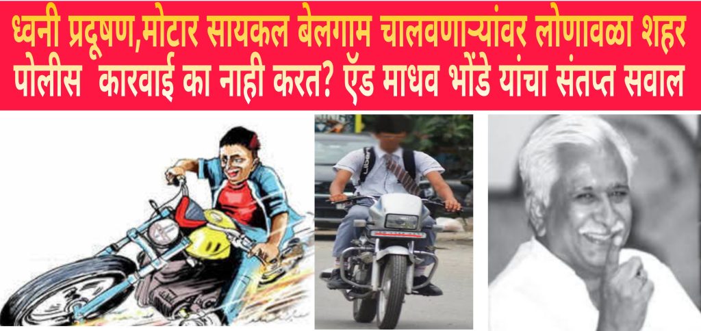 ध्वनी प्रदूषण,मोटार सायकल बेलगाम चालवणाऱ्यांवर लोणावळा शहर पोलीस कारवाई का नाही करत? ऍड माधव भोंडे यांचा संतप्त सवाल