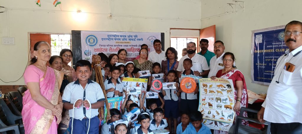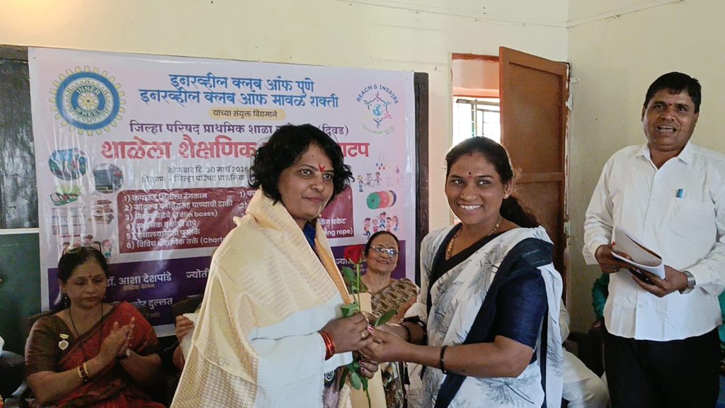 मावळ मराठा न्युज – मावळ,दि.३० मार्च २०२६ रोजी इनरव्हील क्लब ऑफ मावळ शक्ती व इनरव्हील क्लब ऑफ पुणे यांच्या संयुक्त विद्यमाने जिल्हा परिषद प्राथमिक शाळा राजेवाडी दिवड तालुका मावळ येथे इयत्ता १ ली ते ४ थी च्या विद्यार्थ्यांकरिता शौचालयासाठी पाण्याची लाहीन… सिंटेक्स टाकी… छोटा पंप.. गार्डन ला पाणी देण्याकरिता पाईप बंडल.. शाळेची कंपाउंड वॉलचे पेंटिंग शाळेतील मुलांना… जेवणाचा डबे.. पारंपारिक खेळ खेळण्या करिता दोरी उडी… घुंगरू काठी.. अभ्यास करण्यासाठी तक्ते.. ग्रंथालयासाठी पुस्तके इत्यादी शैक्षणिक साहित्य मुलांना देण्यात आले कार्यक्रमाप्रसंगी प्रमुख मान्यवर इनरव्हील क्लब पुणे अध्यक्षा सौ.माधवी पुरोहित …इनरव्हील क्लब मावळ शक्ती अध्यक्षा सौ. ज्योतीताई भरत राजिवडे.. दिवड चे सरपंच श्री.गणेश राजीवडे …मावळ शक्तीच्या सचिव सुरैया शेख.. इनरव्हील पुणे च्या सचिव सौ.सुजाता जयवंत …मावळ शक्तीच्या खजिनदार सौ.राजश्री नाईकरे पुणे क्लबच्या खजिनदार सौ.सविता तामाने .. एडिटर सौ. रेखा बरीदे मा.श्री. भरत नाना राजिवडे हे प्रमुख मान्यवर उपस्थित होते. औक्षण करून पाहुण्यांचे स्वागत करण्यात आले व स्वागत गीत म्हणून कार्यक्रमाची सुरुवात करण्यात आली. पुणे क्लबचे अध्यक्षा माधवी पुरोहित यांनी आपल्या मनोगतात शाळेला साहित्य ..पेंटिंग व पाण्याची व्यवस्था केल्याबद्दल आम्हाला खूप आनंद होत आहे असे आपल्या मनोगत वारंवार उल्लेख करून शाळे बद्दलच्या आपल्या भावना व्यक्त केल्या व इथून पुढेही काही शाळेला मदत लागली तर नेहमी आम्ही करत जाऊ असे आश्वासन दिले. मावळ शक्तीच्या अध्यक्षा सौ.ज्योती राजिवडे यांनी आपल्या मनोगतात शाळेसाठी केव्हाही कोणतीही मदत लागली तर आमचा क्लब हा नेहमी शाळेसाठी व मुलांच्या शिक्षणासाठी खूप चांगलं काम करत आहे व इथून पुढेही करत राहू असा शब्द दिला.दिवड चे सरपंच मा. श्री गणेश राजीवडे यांनी आपल्या मनोगतात ग्रामीण भागातील शाळे करीता पुरेसा निधी उपलब्ध नसतो त्यामुळे शाळेची कामे वेळेवर होत नसतात आपल्यासारख्या संस्था खेडेगावात येऊन मुलांसाठी खूप छान काम करतात त्याबद्दल दोन्ही ही संस्थेचे अध्यक्ष यांचे व इतर सभासदांचे आभार मानले.कार्यक्रमाचे सूत्रसंचालन आदर्श शिक्षक मा.श्री. गणेश दिवर यांनी केले व आभार सामाजिक कार्यकर्ते मा श्री महेंद्र राजीवडे यांनी मानले कार्यक्रमाप्रसंगी माजी उपसरपंच श्री प्रकाश राजीवडे …श्री.शशिकांत पडवळ …श्री.शशिकांत राजीवडे…श्री. नितीन शेडगे श्री. भिकाजी राजीवडे सौ. चंद्रभागा राजीवडे सौ. स्नेहलताई राजीवडे सौ.छायाताई राजिवडे.. अश्विनी बेंद्रे ..सौ. मंजुळाताई सावळे तसेच इतर पालक वर्ग मोठ्या संख्येने उपस्थित होते मुलांना फळे व अल्पोपहार दे