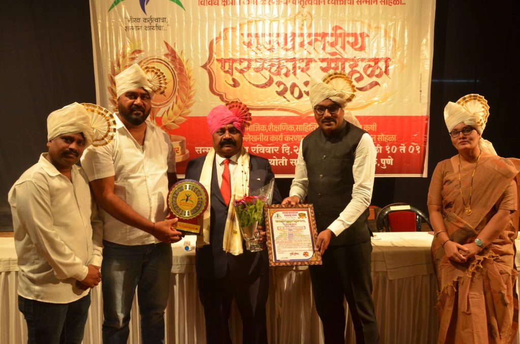 मावळ मराठा न्युज -पुणे येथे ज्ञानज्योती सावित्रीबाई फुले स्मारक भवना मध्ये नुकत्याच झालेल्या कार्यक्रमात स्पंदन फाऊँडेशन महाराष्ट्र राज्य यांच्या वतीने सामाजात सांस्कृतिक , क्रिडा , पर्यावरण , राजकिय , कला , धार्मिक , आरोग्यविषयक , शैक्षणिक , साहित्यिक , पत्रकारिता अशा विविध क्षेत्रामध्ये उल्लेखनिय सामाजिक कार्य केल्या मुळे भोसरी- कासारवाडीचे सुपुत्र पैलवान *काळुराम लांडगे* यांना सन्मानिय प्रमुख पाहुणे पुणे येथील श्री.फाउँडेशनचे संस्थापक अध्यक्ष *मा.श्री.सागर उर्फ संदीप पाडाळे ,* पुणे येथील सेल्स टॅक्स इन्स्पेक्टर *मा.सौ.प्रणाली देशमुख मॅडम ,* पोलीस इन्स्पेक्टर *मा.सौ.अश्विनी पाटील मॅडम ,* विद्यानिकेतन संस्था महाराष्ट्र राज्याचे संस्थापक अध्यक्ष *मा.श्री.शशिकांत कोचळे सर* यांच्या शुभहस्ते *” स्पंदन राज्यस्तरीय पुरस्कार २०२६ “* हा पुरस्कार *सन्मानचिन्ह व सन्मानपत्र* देऊन कासारवाडीचे सुपुत्र पैलवान *काळुराम लांडगे* यांना पुरस्कार बहाल करण्यात आला.यावेळी प्रमुख पाहुणे श्री.शशिकांत कोचळे यांनी आपल्या भाषणात मानवतेच्या सेवेत स्वताःला समर्पित करणे ही केवळ एक कृती नसुन ती एक महान जीवनमुल्य आहे समाजाच्या उन्नतीसाठी आणि शिक्षणाच्या प्रसारासाठी आपण ज्या निस्वार्थ भावनेने , चिकाटीने आणि अखंड समर्पणाने कार्य केले , ते खरोखरच प्रेरणादायी आणि अभिमानास्पद आहे असे विचार सर्वांनच्या समोर मांडले.या कार्यक्रमाच्या वेळी पुरस्कार्थी त्यांचे नातेवाईक व नागरिकांनी भरपुर गर्दी केली होती.कार्यक्रम संपुर्ण पारपाडण्यासाठी संस्थेचे अध्यक्ष *श्री.अमर जाधव* व स्पंदन फाऊँडेशन महाराष्ट्र राज्य , संस्थेचे पदाधिकारी , संचालक मंडळ व सभासद वर्ग यांनी भरपुर प्रयत्न केले.