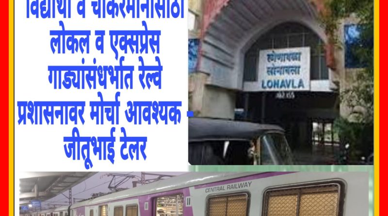 विद्यार्थी व चाकरमानी यांचे साठी लोकल व एक्सप्रेस गाड्यांसंधर्भात रेल्वे प्रशासनावर मोर्चा आवश्यक – जीतूभाई टेलर