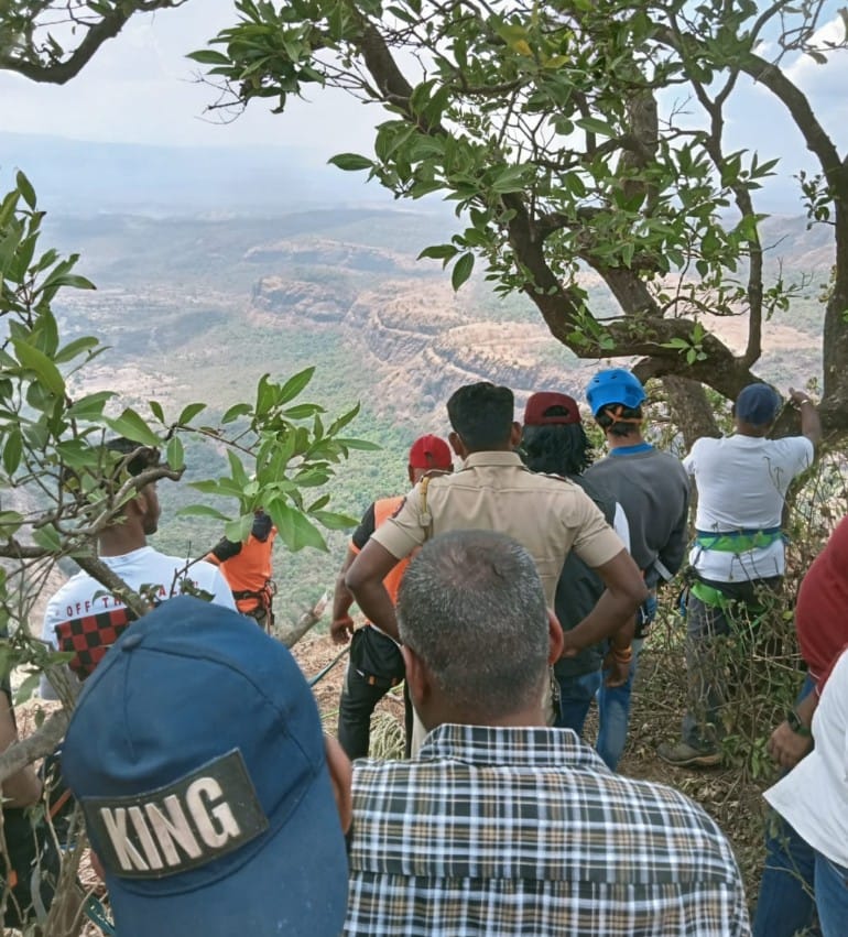 मावळ मराठा न्यूज लोणावळा,दिनांक ३१/०३/२०२३ सकाळी ११ .४५ ला लायन्स पॉईंट, लोणावळा येथून शिवदुर्गला फोन आला. एक व्यक्ती दरीत पडला आहे. थोडी माहिती घेतली व लगेचच लोणावळा ग्रामीण पोलिस स्टेशनला कळवले. पोलिस निरीक्षक साहेब यांनी त्वरित प्रतिसाद दिला , भारत भोसले साहेब पी.एस. आय यांच्या सह घटना स्थळी पोचले. शिवदुर्ग रेस्कु टीम साहित्यासह पोचली व ठिक एक वाजता काम चालू केले . अर्धा पाऊण तासात बॉडी दिसली.साधारण दोनशे मिटर रॅपलींग केल्यानंतर बॉडी दिसायला लागली त्यानंतर अजून शंभर फुटांपेक्षा जास्त अंतरावर बॉडी होती . बाकी तयारी चालू केली खाली बॉडी पॅक करण्यासाठी स्ट्रेचर व इतर साहित्य पाठवले . योगेश उंबरे, सुरज वरे यांच्या मदतीला हर्ष तोंडे खाली गेला . वर सर्व जबाबदारी महेश मसने, सचिन गायकवाड सर यांनी सांभाळली, सेट अप लावला खाली बॉडी पॅक झाली होती. खाली बॉडी तीव्र उतारावर असल्याने बॉडी पॅकिंगला अडचणी येत होत्या. पोलिस निरीक्षक किशोर धुमाळ साहेब, पोलिस उपनिरीक्षक भारत भोसले यांच्या सह अनेक पोलिस कर्मचारी मदतीला होते. वर घनदाट जंगल व तीव्र उतार.या ठिकाणी टिमला थांबायला पण जागा नव्हती बॉडी खेचण्यासाठी सुद्धा कारवीच्या जंगलामुळे अवघड होते. खालून वॉकीटॉकीवर कॉल आला व बॉडी खेचायला चालू झाले शंभर फुट खेचल्यानंतर वर खेचण्यासाठी जड जात होते. अजून जोर लावला तर जोरात आवाज होऊन रोपचा आवटर फाटला . सेट अप चेंज ओव्हर केला जूमार अजुन पुढे लावले परत ओढायला चालू केले परत जोरात आवाज झाला व परत रोप तुटला . आता काही सुचत नव्हते.आदित्य पिलानेला खाली पाठवले काय झाले चेक करायला त्याने सांगितले रोप गुंडाळून गेला आहे. खरं वाटत नव्हते म्हणून सुनिल गायकवाड स्वत: एजपर्यंत खाली जाऊन आले . रोप भयंकर गुंडाळून त्याची गुंडाळी अडकत होती .तो गुंता काढण्यासाठी आदित्यने खुप प्रयत्न करत गुंता काढला . व नंतर अथक परिश्रमाने हळूहळू बॉडी वर आली . बॉडी पोलीसांच्या ताब्यात दिली व परतीच्या प्रवासासाठी आवराआवर चालू केली. आजची शिवदुर्ग रेस्कु ची टिममहेश मसने , सचिन गायकवाड सर , हर्ष तोंडे, योगेश उंबरे, सूरज वरे, योगेश दळवी, हर्षल चौधरी, आदित्य पिलाने, प्रिन्स बेठा, आयुष वर्तक, मधुर मुंगसे,वैभव राऊळ, राजेंद्र कडू,अशोक उंबरे, गणेश रौंदळ , अमित बलकवडे , सदाशिव सोनार , चंद्रकांत गाडे , अशोक कुटे, हनुमंत भोसले , केतन खांडेभरड, संतोष खोसे , अमोल सुतार ,सुनील गायकवाड मयताचे नाव ..खेमा बबन घुटे वय ३९,परली, या.सुधागड, जिल्हा रायगड