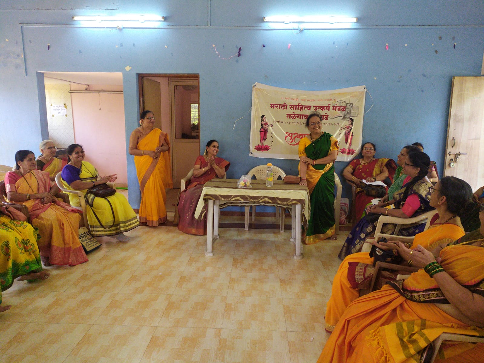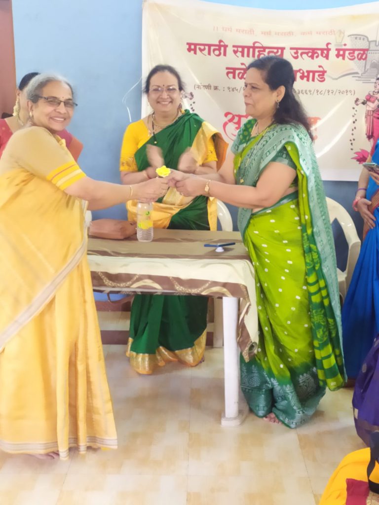 मावळ मराठा न्यूज :- तळेगांव (सौ रश्मी थोरात यांज कडून)बुधवार दि. ०५/०४/२०२३, विश्वातील सौंदर्य, मांगल्य आणि नातीगोती जपणारा गृहिणीपणाचा मराठी उत्सव म्हणजे चैत्रागौर हळदीकुंकू नुकताच स्वराज नगरी क्लब हाऊस येथे उत्साहात साजरा झाला.वर्षाताई किबे यांचे पैसाफंड महिला मंडळ,स्वराज नगरी देखभाल सेवा सहकारी संस्था आणि मराठी साहित्य उत्कर्ष मंडळ यांच्या संयुक्त विद्यमाने आयोजित करण्यात आलेल्या या कार्यक्रमाचे खूप कौतुक झाले.या प्रसंगी देवीचे पूजन,अन्नपूर्णा स्तोत्र, श्रीसूक्ताच्या सामुदायिक पठणाने कार्यक्रमास मांगल्य आले.मराठी साहित्य उत्कर्ष मंडळाच्या अध्यक्षा आणि स्वराज नगरीच्या प्रशासिका सौ कांचन सावंत यांनी हा सुयोग जुळवून आणला.त्यानंतर सौ. कांचन ताईंनी मराठी साहित्य उत्कर्ष मंडळातर्फे उपस्थितांचे स्वागत केले. गौर जागवत कार्यक्रमामध्ये चैतन्य आणले. मराठी साहित्य उत्कर्ष मंडळाच्या उत्कर्षा माधवी खडक्कार, सीमा जोशी, अर्चना मुरूगकर, नंदिनी काळे, अनघा कुलकर्णी आणि रश्मी थोरात यांची पैसा फंड महिला मंडळातील उपस्थितांना ओळख करून दिली. या सर्व कवयित्रींनी विविध विषयांवरील स्वरचित कविता सादर केल्या. सर्व रसिकांनी त्यांना भरभरून दाद दिली. वाचन संस्कृती टिकवणे व ती वाढीस लागणे यासाठी मराठी साहित्यावर आधारित प्रश्न मंजुषा घेणार असल्याचे सौ कांचन ताईंनी जाहीर केले. सीमा जोशी आणि कांचन सावंत यांनी हसत खेळत हा साहित्यिक खेळ रंगवत नेला. यावेळी रश्मी थोरात आणि अर्चना मुरुगकर यांनी त्यांना सहाय्य केले. नाना प्रकारचे साहित्यावरील प्रश्न कार्यक्रमात रंगत आणत होते. सर्वात जास्त अचूक उत्तरे देणाऱ्या महिलांचे एकूण गुण वाढत होते. गुणांकन माधवी खडक्कार आणि नंदिनी काळे यांनी केले. विजेती कोण हे ठरवणारा कळीचा प्रश्न होता लहानपणीच्या पाठ्यपुस्तकातील कविता म्हणून दाखवणे. आश्चर्य म्हणजे त्यालाही उत्तम प्रतिसाद मिळाला. प्रथम क्रमांकाच्या विजेत्या ठरल्या पैसा फंडच्या सुषमा कुलकर्णी आणि स्वराज नगरीच्या माधवी मरकळे. तसेच पुष्पलता बेल्हेकर, भारती संत, अरुंधती अग्निहोत्री,वंदना खटावकर,गौरी देशपांडे, यांनी जास्तीत जास्त प्रश्नांची उत्तरे देऊन स्पर्धेत चुरस निर्माण केली.सहभागी सातही उत्तम वाचकांना मराठी साहित्य उत्कर्ष मंडळ यांचे कडून काव्य संग्रह भेट म्हणून देण्यात आले.पैसा फंड महिला मंडळात वाचन चळवळ अगदी जोमात असल्याचे चित्र दिसले. महिलांना ही बौद्धिक प्रश्नमंजुषा फार आवडली असल्याचे त्यांनी सांगितले.विशेष म्हणजे या कार्यक्रमाला मा. वर्षाताई किबे आणि त्यांची कन्या निरुपा कानिटकर यांची उपस्थिती चार चाँद लावून गेली. त्यांनी महिलांशी संवाद साधला. नि