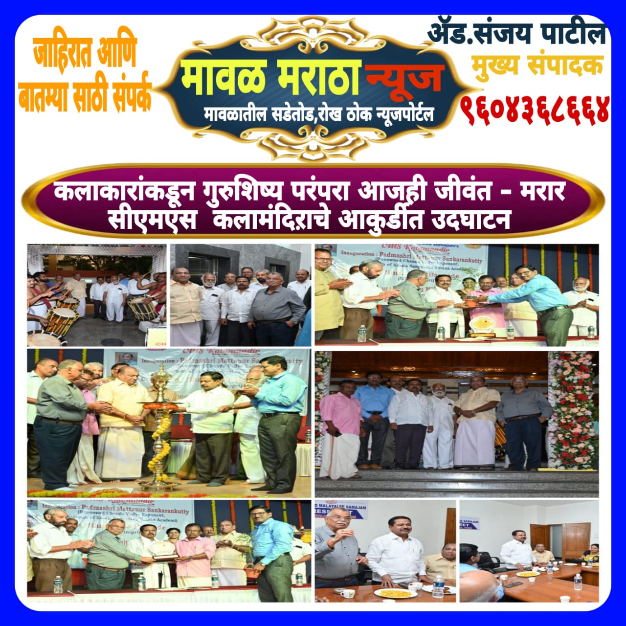 मावळ मराठा न्यूज, पिंपरी(प्रतिनिधी) गुरुशिष्य परंपरेला भारतीय संस्कृतीमध्ये अनन्यसाधारण महत्त्व आहे. आधुनिक काळातदेखील कलाकारांनी गुरु शिष्यांची परंपरा कायम जीवंत ठेवली आहे. हि परंपरा सीएमएस कलामंदिर भविष्यात देखील कायम सुरू ठेवतील. असा विश्वास केरळ संगीत नाटक अकादमीचे अध्यक्ष,चेंडा वाद्य पंडीत ,पद्मश्री मट्टनूर शंकरनकुट्टी मरार यांनी व्यक्त केला.आकुर्डी येथील चिंचवड मल्याळी समाजमच्या वतीने आकुर्डी रेल्वे स्टेशनसमोर केरलाभवन मध्ये सुरू करण्यात असलेल्या सीएमएस कलामंदिर चे उदघाटन (दि १६ रोजी) करण्यात आले. यावेळी ते बोलत होते. यावेळी आमदार अण्णा बनसोडे,चिंचवड मल्याळी समाजाचे अध्यक्ष टी.पी.विजयन,सरचिटणीस सुधीर सी. नायर,खजिनदार पी. अजयकुमार, कला मंदिर प्रमुख पी. व्ही. भास्करन, कलावेदीचे संयोजक जी. करुणाकरन, उपाध्यक्ष पी श्रीनिवासन,जॉय जोसेफ,सहसचिव जी. एस. नायर,फॅन्सी विजयन, महिला विभाग समन्वयक प्रविजा विनीतआदी उपस्थित होते.आमदार बनसोडे म्हणाले कि, सीएमएस हि संस्था उत्तम दर्जाचे शिक्षण देवून उत्तम नागरीक घडवित आहे. त्यासोबतच कलामंदिर च्या माध्यमातून उत्तम दर्जाचे कलावंत देखील घडविण्याचे कार्य करित आहे. पद्मश्री मरार यांनी या अकादमीत शिकवायला येणार अशी इच्छा व्यक्त केली. असे झाल्यास या सीएमएस कलामंदिरातून जागतिक दर्जाचे कलावंत घडेल.आमच्या शहराचा नावलौकिक वाढेल. असे मत व्यक्त केले.टी पी विजयन म्हणाले कि, कलेचा प्रसार करणे हा कला मंदिर उभारण्याचा हेतू आहे. आम्ही प्रसारक म्हणून कार्य करणार त्यामुळे सीएमएस कलामंदिर लवकरच महाराष्ट्रात नावारूपाला येईल यात शंका नाही. यावेळी राजू मिसाळ यांच्या तर्फे आलेल्या सर्व प्रेक्षकांना रोपांचे वाटप करण्यात आले.प्रास्ताविक भाषण पी.व्ही भास्करन यांनी केले. सूत्रसंचालन लता विनोद यांनी तर आभार सुधीर नायर यांनी मानले.