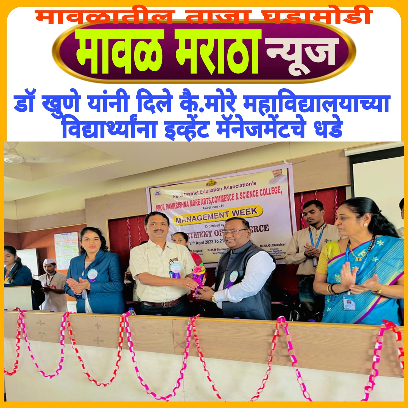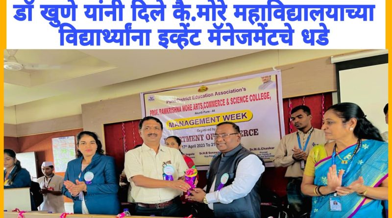 डॉ खुणे यांनी दिले कै.मोरे महाविद्यालयाच्या विद्यार्थ्यांना इव्हेंट मॅनेजमेंटचे धडे