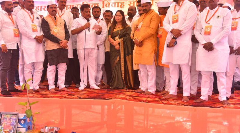 मावळ मराठा न्यूज -: कार्ला मळवली परीसरातील कार्येकर्तेच्या संकल्पनेतून धर्मवीर छत्रपती संभाजी महाराज सामुदायिक विवाह सोहळ्याच्या माध्यमातून तालुक्यासह बाहेरील अशा सहा जोडप्यांचा विवाह सोहळा थाटामाटात साजरा झाला.या विवाह सोहळ्यास महाराष्ट्र राज्याचे आरोग्य मंत्री डाॅ तान्हाजी सावंत यांनी उपस्थिती लावुन नववधुवरांना शुभेच्छा दिल्या. वधुस,साखरपुड्याची साडी,लग्नाचा शालु ,मणी मंगळ सुत्र,कर्णफुले,असं एक तोळा सोनं, पैजण, जोडवी, नथ, मनगटी घड्याळ,तर वरास साखरपुडा व लग्नाचा पोशाखा सह मनगटी घड्याळ देण्यात आले.नव दांपत्यास वृक्षलागवडीचा संदेशम्हणुन एक वडाचे झाड देण्यात आले. सकाळी छत्रपती शिवाजी महाराजांच्या प्रतिमेचे पुजन करुन या सामुदायिक विवाह सोहळ्यास आनंदीमय वातावरणात सुरुवात झाली.ठरलेल्या वेळेनुसार,साखरपुडा,हळद,वह्राडी मंडळीचे भोजन झाल्यावर नवरदेवांची पारंपारिक बैलगाडीत, ढोलताशाच्या गजरात व तुतारीच्या स्वरात भव्य मिरवणूक विवाह सोहळा कमिटीच्या वतीने काढण्यात आली.ठरल्याप्रमाणे वरराजा मंडपाच्या व्दाराजवळ आल्यानंतर मावळन आत्यांनी औक्षण केल्यावर वधुवरांना वाजतगाजत विवाह मंचावर आणण्यात आले.मंत्री तानाजी सावंत,बापू भेगडे,चंद्रकांत सातकर,बाळासाहेब नेवाळे यांनी वधुवरांना शुभेच्छा दिल्या तर ह भ प दिलीप महाराज खेंगरे यांनी नवदांपत्यास शुभाशीर्वाद दिले.तद्नंतर मंत्रोच्चार करत मंगलाष्टकाने मोठ्या दिमाखात हा विवाह सोहळा संपन्न झाला. साडं झाल्यावर नव वधुवरांच्या वरबापांची सर्व सभासदांनी गळाभेट घेतली.शेवटी नव वधुंची भावमय वातावरणात वधु कडील मंडळी व सोहळा कमिटीने पाठवणी केली.अंत्यत देखण्या स्वरूपात झालेल्या या सोहळ्यास महाराष्ट्र क्राॅग्रेस कमिटीचे सुनिल चव्हाण,मावळचे आमदार सुनिल शेळके,माजी सभापती विठ्ठल शिंदे ,शिवसेना तालुकाप्रमुख राजेश खांडभोर,आर पी आय उपाध्यक्षा यमुना साळवी,माजी नगरसेविका बिंद्रा गणात्रा, यांच्यासह,राजकिय,धार्मिक,सामाजिक,श्रेत्रातील अनेकांनी उपस्थिती लावली .धर्मवीर छत्रपती संभाजी महाराज सामुदायिक विवाह सोहळ्याचे संस्थापक अध्यक्ष शरद हुलावळे,सोहळा कमिटीचे अध्यक्ष चंद्रकांत शेलार,रजिस्टर कमिटीचे अध्यक्ष दत्तात्रय केदारी,यांच्यासह सर्व पदाधिकारी व सोहळा कमिटीच्या सर्व सदस्यांनी हा विवाह सोहळा पार पडण्यासाठी परीश्रम घेतले.कमिटीतील तसेच कमिटी बाहेरील अनेकांनी या सामुदायिक विवाह सोहळ्यासाठी मदत केली. शाही थाटात झालेल्या या सोहळ्याचे प्रास्ताविक शरदराव हुलावळे,यांनी तर पाहुण्याचे स्वागत कमिटीच्या उपाध्यक्षा सायलीताई बोत्रे यांनी केले.व सुत्रसंचालन भाऊसाहेब हुलावळे,शांताराम ढाकोळ,मच्छिं