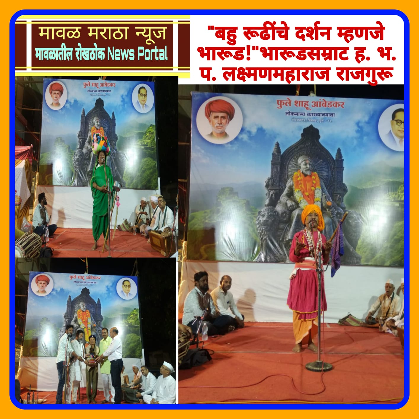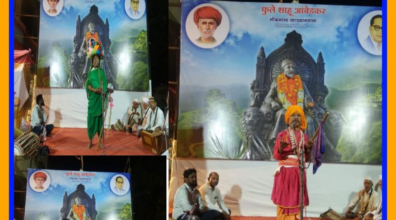 मावळ मराठा न्यूज:- पिंपरी (प्रदीप गांधलीकर)दिनांक : १६ मे २०२३ “बहु रूढींचे दर्शन म्हणजे भारूड होय! लोकरंजनाच्या आणि मनोरंजनाच्या माध्यमातून प्रबोधन करण्यासाठी एकनाथ महाराजांनी भारुडे रचली!” असे प्रतिपादन भारूडसम्राट ह. भ. प. लक्ष्मणमहाराज राजगुरू यांनी श्री दत्त मंदिर चौक, मोहननगर, चिंचवड येथे सोमवार, दिनांक १५ मे २०२३ रोजी केले. जय भवानी तरुण मंडळ आयोजित सहा दिवसीय फुले – शाहू – आंबेडकर लोकमान्य व्याख्यानमालेत ‘अरे अरे माणसा तू कधी होशील रे माणूस? जगण्याचे अंतिम सत्य!’ या विषयावरील पंचम पुष्प गुंफताना लक्ष्मणमहाराज राजगुरू यांनी बहुरंगी अन् बहूढंगी भारुडांचे सादरीकरण करीत श्रोत्यांना खळखळून हसवत अंतर्मुख केले. शाहीर प्रकाश ढवळे कार्यक्रमाच्या अध्यक्षस्थानी होते; तसेच देवेंद्र तायडे, संपत देशमुख, उद्योजक भगवान पठारे आणि जय भवानी तरुण मंडळाचे अध्यक्ष मारुती भापकर यांची प्रमुख उपस्थिती होती.ह. भ. प. लक्ष्मणमहाराज राजगुरू म्हणाले की, “परमेश्वराने दुर्लभ असा नरदेह आपल्याला दिला आहे. या देहाचे सार्थक करण्यासाठी माणसासारखे जगा अन् माणसासारखे वागा. ‘नाचू कीर्तनाचे रंगी, ज्ञानदीप लावू जगी’ असे संत नामदेव महाराजांनी सांगितले; पण तरुण डीजेच्या तालावर नाचतात अन् वारीकडे दुर्लक्ष करतात. व्यसन ही फॅशन झाली आहे. गुटखा, तंबाखू खाऊन तरुण नपुंसक होऊ लागले आहेत. मांसाहार, मद्यपान हे राक्षसी प्रवृत्तीचे लक्षण आहे. अल्प कष्टात ऐशोआराम करण्याची सवय वाढत चालली आहे. त्यासाठी दांभिकतेने भक्तीचे प्रदर्शन केले जाते. ज्या ईश्वराने ही सृष्टी निर्माण केली त्याला बोकड, कोंबड्याचा बळी दिल्याने तो पावणार आहे का? स्त्रीभ्रूणहत्या थांबली पाहिजे. संस्कृतीचा ऱ्हास रोखण्यासाठी समाजाला संतविचारांची गरज आहे. मृत्यूनंतर माणूस प्रपंचातील एक फुटकी कवडीदेखील सोबत घेऊन जाऊ शकत नाही. भगवंताची भक्ती किंवा देशभक्ती करून जन्माचे सार्थक करा. अंत:करणात ईश्वराला स्थान दिले; तर षड्विकार दूर होतील. जोपर्यंत वारकरी संप्रदाय जिवंत आहे; तोपर्यंत महाराष्ट्र जिवंत आहे!”कडकलक्ष्मी, गोंधळी, सुईण,बुरगंडा,वेडी, बहुरूपी अशा विविध भूमिका साकारत राजगुरू यांनी श्रोत्यांना मंत्रमुग्ध केले. भक्तिगीते, कबीराचे दोहे, अभंग, गवळण, भारुडे यांच्या माध्यमातून त्यांच्या सहकाऱ्यांनी श्रोत्यांना खिळवून ठेवले होते.कार्यक्रमाच्या प्रारंभी वैभव मदने या बालव्याख्यात्याने आपल्या छोटेखानी व्याख्यानाने श्रोत्यांना प्रभावित केले. शाहीर प्रकाश ढवळे यांनी आपल्या अध्यक्षीय मनोगतातून, “भारतीय संस्कृतीचा प्रसार अन् प्रचार तसेच महापुरुषांचा वैचारिक वारसा भावी पिढीपर्यंत पोहोचवण्यासाठी व्याख्यानमाला 