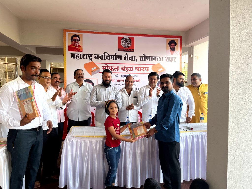 एक पाऊल शिक्षणा साठी अंतर्गत लोणावळा शहर मनसे याच्या वतीने मोफत वह्या वाटप