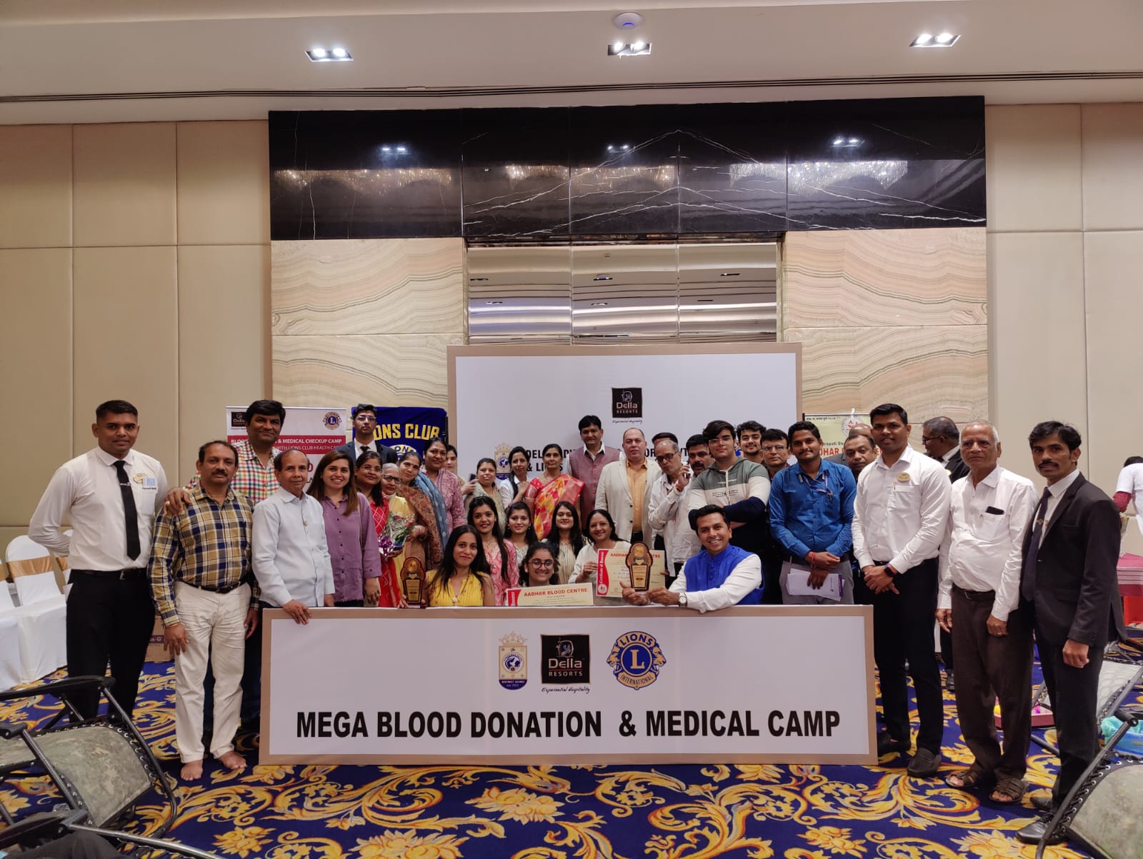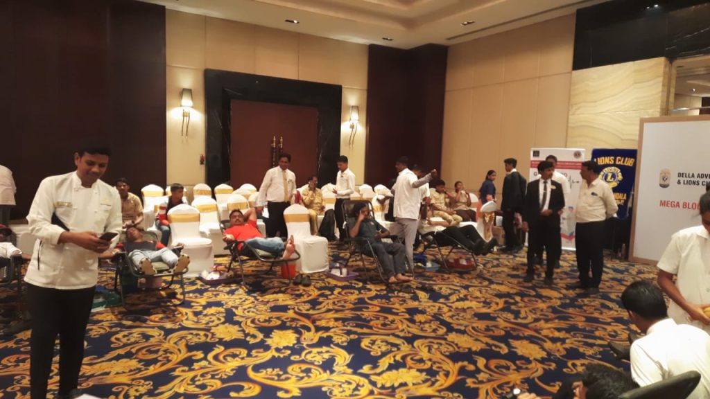 मावळ मराठा न्यूज़ :- लोणावळा नवनिर्वाचित अध्यक्ष लायन ॲड. प्रफुल्ल्ल लुंकड ह्यांच्या नेतृत्वातलायन्स कल्ब लोनावाला खंडाळा आणि डेला रिसोर्ट ह्यांच्या संयुक्त विद्यमाने रक्तदान शिबीर, मेडिकल चेकअप, डोळे चेकअप आणि डेंटल चेकअप कॅम्प आयोजित करण्यात आला .ह्यावेळेस लायन डाॅ. दिलीप सुराणा, लायन डाॅ. पी. एम. ओसवाल, लायन डाॅ. लीना पाॅन, मनशक्ति चे डाॅ. सुहास गोसावी, डाॅ. निधि टाटीया. संजम ओसवाल, भवांशी ओसवाल, डाॅ. नरेश पाटिल हे उपस्थित होते. ह्या सर्व डॉक्टर्स सहित नवनिर्वाचित अध्यक्ष लायन ॲड. प्रफ्फुल लुंकड, लायन संगिता लुंकड, लायन प्रितम लुंकड. लायन मनोज लुंकड, लायन सीमा पारख, लायन विरल गाला, लायन दिपाली गाला, लायन अभय जैन,लायन कांता ओसवाल, लायन राजु शिंदे, लायन कोमल शिंदे, लायन साजीयाभाभी, लायन देवल पारेख, लायन चार्मी पारेख, लायन आशिष पॉन, लायन देवेंद्र नाळेकर, निराली नाळेकर, ह्यांचा डेला रिसोर्ट कडुन यथोचित सन्मान करण्यात आला.रक्तदान २५३, डोळे चेकअप १२६, डेंटल चेकअप ५९ आणि मेडिकल चेकअप १०७आणि सर्व रक्तदात्यांना लायन्स कल्ब लोनावाला खंडाळा कडुन ५ लाखांचा अपघाती विमा खजिनदार लायन प्रकाश जैन कडुन भिंतीवरील घड्याळ भेट स्वरूप प्रदान करण्यात आले. डेला रिसोर्ट चे डिरेक्टर लायन तरुण यांचा यथोचित सत्कार अध्यक्ष लायन प्रफुल्ल कङुन सन्मान चिन्ह भेट प्रदान करण्यात आली. त्यावेळेस डेला रिसोर्ट चे सी.ई.ओ रेमंड ईरानी,संपुर्ण एच.आर. टिम आणि सदस्य उपस्थित होते.