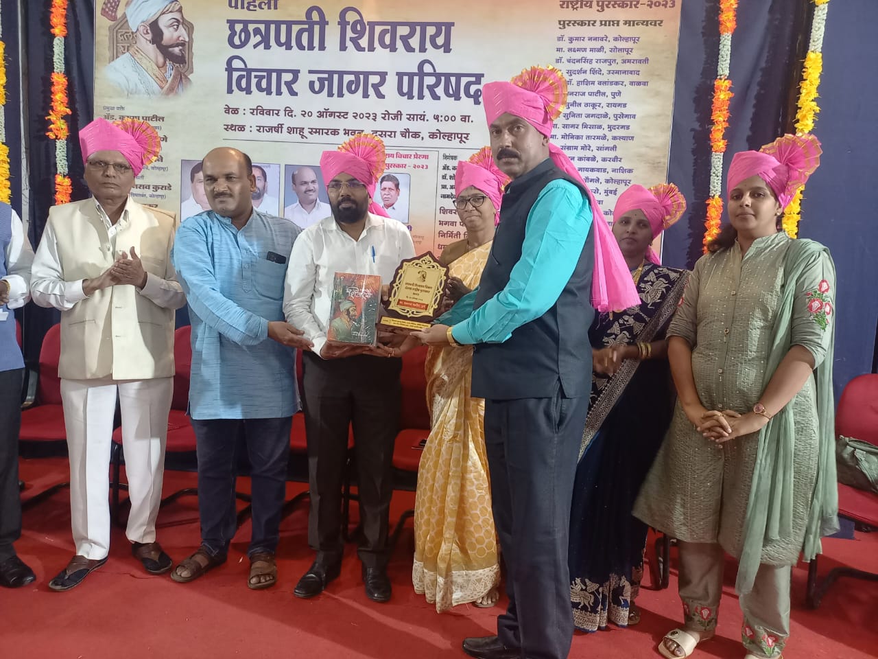 मावळ मराठा न्यूज़ दि.२० ऑगस्ट २०२३ रोजी कोल्हापूर येथील राज्यश्री शाहू स्मारक भवन दसरा चौक शिवराय कुशांबु ब्रिगेड व भगवा फाउंडेशन व इतर परिषदामार्फत प्रमुख वक्ते ॲड. कृष्णा पाटील, साहित्यिक विचारवंत ,तासगाव यांच्या हस्ते प्रमुख कार्यक्रमात प्रा. धनराज पाटील यांना राष्ट्रीय पुरस्काराने सन्मानित करण्यात आले. आपल्या सर्वांच्या आदर्श रयतेचे राजे छत्रपती शिवाजी महाराज यांच्या समतावादी आणि मानवतावादी विचारांना आदर्श मानून आपल्या जीवनात कृती व व्यवहार आणि सामाजिक सलोखा जपत विविध क्षेत्रात कार्यरत असणाऱ्या मान्यवरांच्या महत्त्वपूर्ण कार्याची दखल घेऊन प्रमुख पाहुण्यांच्या हस्ते अशा व्यक्तींना सन्मानित करण्यात आले .यावेळी परिषदेचे अध्यक्ष मा. चंद्रकांत फडतरे,संस्थापक अध्यक्ष शिवराय ब्रिगेड कृष्णा पाटील ॲड. कृष्णा पाटील,साहित्यिक व विचारवंत तासगाव ॲड. मंचकराव डोणे, मा.अनिल म्हमाने,ॲड. करुणा विमल ,छाया पाटील,संयोजक इत्यादी मान्यवर मोठ्या संख्येने राज्यश्री शाहू महाराज स्मारक सभागृहामध्ये उपस्थित होते. छत्रपती शिवराय विचार प्रेरणा राष्ट्रीय पुरस्काराच्या सन्मानार्थ लोणावळा एज्युकेशन ट्रस्टचे अध्यक्ष मा.रमेशचंद्र नय्यर, सचिव दत्तात्रय पाळेकर,ॲड. नीलिमा खिरे ,उद्योजक नंदकुमार वाळंज ,विश्वस्त श्री दत्तात्रय येवले ,सीडीसी मेंबर ,श्री विशाल पाडाळे ,महाविद्यालयाचे प्रभारी प्राचार्य डॉ.विलास पाटील यांनी अभिनंदन केले.