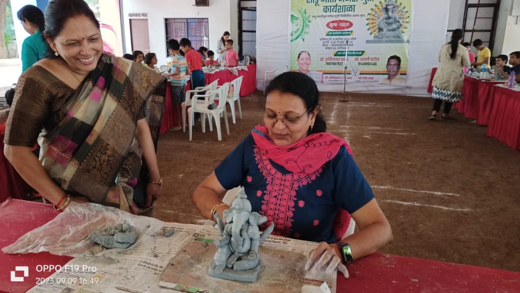 विद्यार्थ्यांनी लुटला पर्यावरणपूरक गणेशमूर्ती निर्मितीचा आनंद