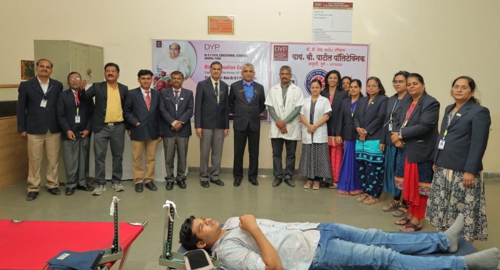 मावळ मराठा न्यूज़ ,पिंपरी(प्रतिनिधी) आकुर्डी स्थित डॉ. डी. वाय. पाटील प्रतिष्ठानचे संस्थापक अध्यक्ष डॉ. डी. वाय. पाटील साहेब यांच्या ८८ व्या वाढदिवसानिमित्त डॉ. डी. वाय. पाटील शैक्षणिक संकुलातर्फे रक्तदान शिबिर आयोजित करण्यात आले. डॉ. डी. वाय. पाटील (दादा) यांचा रविवार दि. २२/१०/२०२३ रोजी ८८ वा वाढदिवस आहे. त्या निमित्त डॉ. डी. वाय. पाटील शैक्षणिक संकुल आकुर्डी यांनी हा सप्ताह ‘वाढदिवस सप्ताह ‘ म्हणून साजरा करण्याचे योजिले असून विविध सामाजिक कार्यक्रमांचे आयोजन केले आहे. याचा एक भाग म्हणून हे रक्तदान शिबिर १८/१०/२०२३ रोजी आयोजित करण्यात आले. या कार्यक्रमाचे नियोजन वाय. बी. पाटील पॉलिटेक्निक तर्फे, डॉ. डी. वाय. पाटील वै्दयकिय महाविद्यालय यांचे सहकार्याने करण्यात आले. यासाठी संकुलाचे संचालक रीअर ॲडमिरल अमित विक्रम, मुख्य वित्तिय अधिकारी श्री. बी. एच. शर्मा, प्राचार्य डॉ. ए. एस. कोंडेकर ,संकुलातील विविध महाविद्यालयांचे प्राचार्य, वाय. बी. पाटील पॉलिटेक्निक आणि इतर महाविद्यालयांचे विभागप्रमुख, सर्व प्राध्यापक, इतर कर्मचारी व विद्यार्थी याप्रसंगी उपस्थित होते. रक्तदात्यांचा या रक्तदान शिबिराला उत्स्फूर्त प्रतिसाद लाभला. या कार्यक्रमासाठी डॉ. डी. वाय. पाटील, आकुर्डी शैक्षणिक संकुलाचे अध्यक्ष मा. डॉ संजय डी. पाटील , उपाध्यक्ष व चेअरमन मा. श्री. सतेज डी. पाटील सर व विश्वस्त तेजस पाटील सर यांचे मोलाचे सहकार्य लाभले.