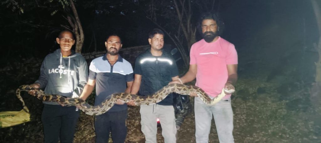 इंडीयन रॉक पायथन जातीचा अजगर वन्यजीव रक्षक मावळ संस्थेच्या मदतीने सुखरूप जंगलात सोडला