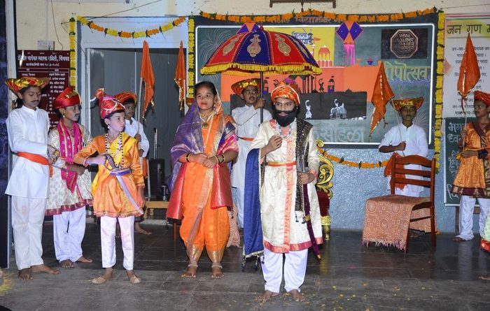 मावळ मराठा न्यूज़ :- पिंपरी (प्रदीप गांधलीकर) दिनांक : १२ नोव्हेंबर २०२३ छत्रपती शिवराज्याभिषेक सोहळ्यास ३५० वर्षे पूर्ण होत असल्याने शिवाजी महाराजांना मानवंदना देण्यासाठी खिंवसरा – पाटील शैक्षणिक संकुल, गणेशनगर, थेरगाव येथे विद्यार्थ्यांनी शिवराज्याभिषेक सोहळा संगीत नाट्याचे उत्कृष्ट सादरीकरण करीत दीपोत्सव साजरा केला. याप्रसंगी पिंपरी – चिंचवड ॲडव्होकेटस् बार असोसिएशनचे अध्यक्ष ॲड. रामराजे भोसले, उपाध्यक्ष ॲड. प्रतीक्षा खिलारी, सचिव ॲड. धनंजय कोकणे, सहसचिव ॲड. उमेश खंदारे, सदस्य ॲड. मीनल दर्शले, ॲड. अय्याज शेख, ॲड. मंगेश खराबे, ॲड. मोनिका गाढवे, ॲड. शंकर घंगाळे, ॲड. विवेक राऊत, ज्ञानदीप एज्युकेशनलचे संचालक दत्तात्रय यादव, पिंपरी – चिंचवड जिल्हाध्यक्ष राहुल आहेर, आत्मजा फाउंडेशनच्या समन्वयक प्रिया गुरव, वनवासी कल्याण आश्रमच्या कार्यकर्त्या विदुला पेंडसे, क्रांतिवीर चापेकर स्मारक समितीचे शिक्षण विभागप्रमुख प्रा. दिगंबर ढोकले, संचालक सदस्य आसराम कसबे, शालासमिती अध्यक्ष नितीन बारणे इत्यादी मान्यवर तसेच मुख्याध्यापक नटराज जगताप, अश्विनी बाविस्कर, आशा हुले, सर्व शिक्षकवृंद, शिक्षकेतर कर्मचारी याचबरोबर बहुसंख्येने पालकवर्ग, विद्यार्थीवर्ग उपस्थित होता.”एक दिवा जिजाऊ मातेसाठी…” , “एक दिवा छत्रपती शिवरायांसाठी…” ,”एक दिवा हिंदवी स्वराज्यासाठी…” , “एक दिवा भगवतगीतेतील विश्वरुप दर्शनासाठी…” असा जयघोष करीत सोहळ्यात दीपोत्सव साजरा करण्यात आला.शिवराज्याभिषेक सोहळा नाट्यात स्वराज्यस्थापनेची प्रतिज्ञा, अफजलखान वध, राज्याभिषेक करण्यामागील कारणे, राज्याभिषेकाची जय्यत तयारी, प्रत्यक्ष गागाभट्टांनी शिवरायांवर केलेला राज्याभिषेक सोहळा, यज्ञ, होमहवन, शिवरायांना सिंहासनावर विराजमान होताना स्वराज्यासाठी बलिदान दिलेल्या मावळ्यांचे झालेले स्मरण अशा विविध प्रसंगांबरोबरच कथानकाला साजेसे नृत्य विद्यार्थ्यांनी सादर केले. यावेळी शाहीर आसराम कसबे यांच्या विश्वरूप दर्शन घडविणार्या भगवतगीतेच्या ११व्या अध्यायाच्या केलेल्या गीतलेखनाच्या ध्वनी चित्रीकरणाचा शुभारंभ करण्यात आला. पिंपरी – चिंचवड ॲडव्होकेटस् बार असोसिएशनच्या अध्यक्षांनी स्वराज्याची राजधानी असलेल्या रायगड किल्ल्याच्या प्रतिकृतीचे आणि भगव्या ध्वजाचे पूजन केले. यावेळी इयत्ता आठवीतील आकांक्षा रोडे आणि पंकज काळे यांनी रायगड किल्ल्याची माहिती सांगितली. प्रा. दिगंबर ढोकले यांनी प्रदूषण वाढविणारे फटाके वाजवू नका, असे आवाहन केले. किल्ला बनविणाऱ्या विद्यार्थ्यांचे मान्यवरांनी कौतुक केले. पालकांनी बनवलेल्या झेंडू फुलांच्या माळांची सजावट, रेखाटलेली सुरेख रांगोळी, रायगड किल्ला प