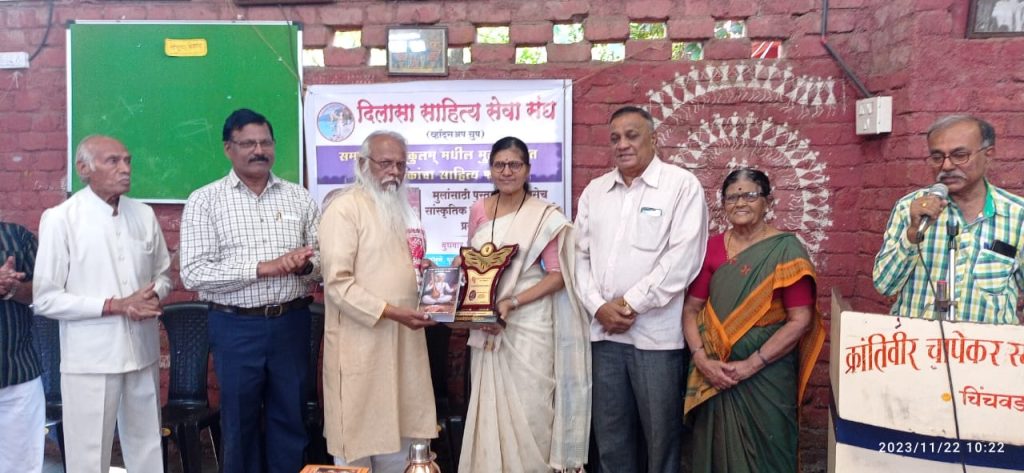 मावळ मराठा न्यूज़ :-पिंपरी (प्रदीप गांधलीकर ) दिनांक : २२ नोव्हेंबर २०२३ “आपल्या कामाची दखल घेऊन प्रदान करण्यात आलेले पुरस्कार प्रेरणा देण्याचे काम करतात; मात्र त्यामुळे वाढलेल्या जबाबदारीचे भान ठेवले पाहिजे!” असे विचार ज्येष्ठ साहित्यिक आणि समाजसुधारक पद्मश्री गिरीश प्रभुणे यांनी पुनरुत्थान समरसता गुरुकुलम्, चिंचवडगाव येथे बुधवार, दिनांक २२ नोव्हेंबर २०२३ रोजी व्यक्त केले. यशवंतराव चव्हाण प्रतिष्ठान पिंपरी – चिंचवड विभागाचे अध्यक्ष पुरुषोत्तम सदाफुले, ज्येष्ठ साहित्यिक श्रीकांत चौगुले, डॉ. पी. एस. आगरवाल, सेवानिवृत्त शिक्षिका शोभा जोशी यांची प्रमुख उपस्थिती होती.यशवंतराव चव्हाण प्रतिष्ठान, पिंपरी – चिंचवड विभागाच्या वतीने पिंपरी – चिंचवड महापालिकेच्या भूमकर चौकातील पब्लिक स्कूलमध्ये कार्यरत असलेल्या उपक्रमशील शिक्षिका सुनीता पवार यांना सानेगुरुजी शिक्षकप्रतिभा पुरस्काराने पद्मश्री गिरीश प्रभुणे यांच्या हस्ते सन्मानित करण्यात आले. सन्मानचिन्ह, शाल, तुकारामांची गाथा असे पुरस्काराचे स्वरूप होते. याप्रसंगी पुरुषोत्तम सदाफुले यांनी, “समाजात असंख्य शिक्षक कार्यरत आहेत; परंतु आपले कर्तव्य बजावत असताना समाजासाठी उल्लेखनीय योगदान देणाऱ्या व्यक्तींचा शोध घेऊन त्यांचा उचित सन्मान करण्यासाठी प्रतिष्ठान कटिबद्ध आहे!” अशी भूमिका मांडली. बाजीराव सातपुते यांनी प्रास्ताविकातून, “सानेगुरुजी पुरस्कार वितरण सोहळ्याप्रसंगी सुनीता पवार या विशेष प्रशिक्षण घेण्यासाठी दिल्ली येथे गेल्या असल्याने त्या सोहळ्याचे अध्यक्ष पद्मश्री गिरीश प्रभुणे यांच्या हस्ते त्यांना आता सन्मानित करण्यात येत आहे!” अशी माहिती दिली. श्रीकांत चौगुले यांनी सुनीता पवार यांच्या कार्याचा सविस्तर परिचय करून दिला.पुरस्काराला उत्तर देताना सुनीता पवार यांनी आपल्या मनोगतातून, “हा पुरस्कार म्हणजे ईश्वरीय इच्छा आहे!” अशी कृतज्ञता व्यक्त केली. कैलास भैरट, सुभाष चव्हाण, अशोकमहाराज गोरे, मुरलीधर दळवी, मानसी चिटणीस यांनी संयोजनात सहकार्य केले. प्रदीप गांधलीकर यांनी सूत्रसंचालन केले. सुरेश कंक यांनी आभार मानले.
