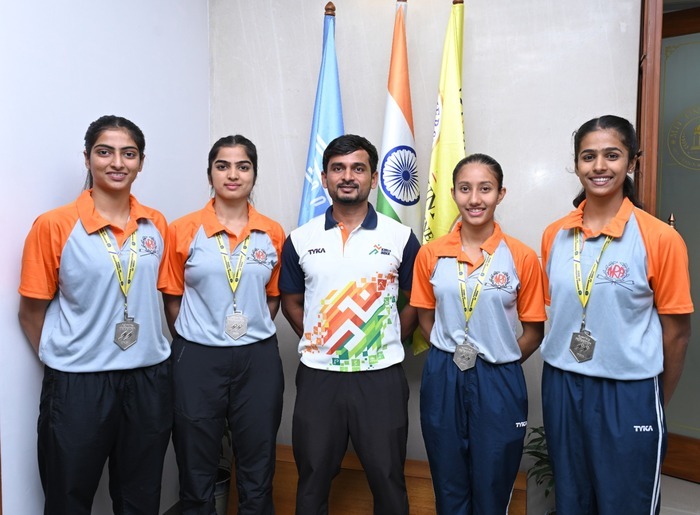 मावळ मराठा न्यूज़ :- पुणेः तेलंगणा रोईंग संघटनेच्या हैदराबाद बोट क्लब येथे भारतीय रोईंग संघटना (आरएफआय) च्या वतीने आयोजित २४ व्या सब ज्युनियर आणि ७व्या आंतरराज्य चॅलेंजर राष्ट्रीय रोईंग चॅम्पियनशिपमध्ये येथील एमआयटी आर्ट डिझाईन आणि टेक्नाॅलाॅजी विद्यापीठाच्या डाॅ.विश्वनाथ कराड क्रीडा अकादमीच्या महिला संघाने रौप्य पदकाची कमाई केली आहे.भारतीय क्रीडा प्राधिकरणाच्या (साई) मान्यतेने झालेल्या या स्पर्धेत देशभरातील २० राज्यांच्या संघांनी सहभाग नोंदविला होता. ज्यामध्ये महाराष्ट्राच्या महिला रोईंग संघाचे प्रतिनिधित्व करणाऱ्या अनुष्का अर्जून गर्जे, भाग्यश्री केशव घुले, स्नेहा योगेशसिंग सोळंकी आणि नेहा गजानन बधे यांच्या संघाने ५०० मीटर स्प्रिंट प्रकारात १ :५१.३९ अशा वेळेची नोंद करताना रौप्य पदकाची कमाई केली. तर याच प्रकारात हरियाणा संघाने १:५०.५६ अशी वेळ नोंदविताना सुवर्णपदक पटकावले तर केरळ संघाला(१:५२.०५) कांस्यपदक मिळाले. राष्ट्रीय रोईंग प्रशिक्षक संदीप भापकर यांच्या मार्गदर्शनाखाली ‘एमआयटी एडीटी’च्या महिला रोईंग संघाच्या रौप्य कामगिरीनंतर विद्यापीठाचे कुलगुरू तथा कार्याध्यक्ष प्रा.डाॅ.मंगेश कराड, प्रा.डाॅ.सुनिता कराड, प्र.कुलगुरू डाॅ.अनंत चक्रदेव, डाॅ.रामचंद्र पुजेरी, डाॅ.मोहित दुबे, कुलसचिव डाॅ.महेश चोपडे, क्रीडा विभागाचे संचालक पद्माकर फड यांनी त्यांचे अभिनंदन केले आहे.
