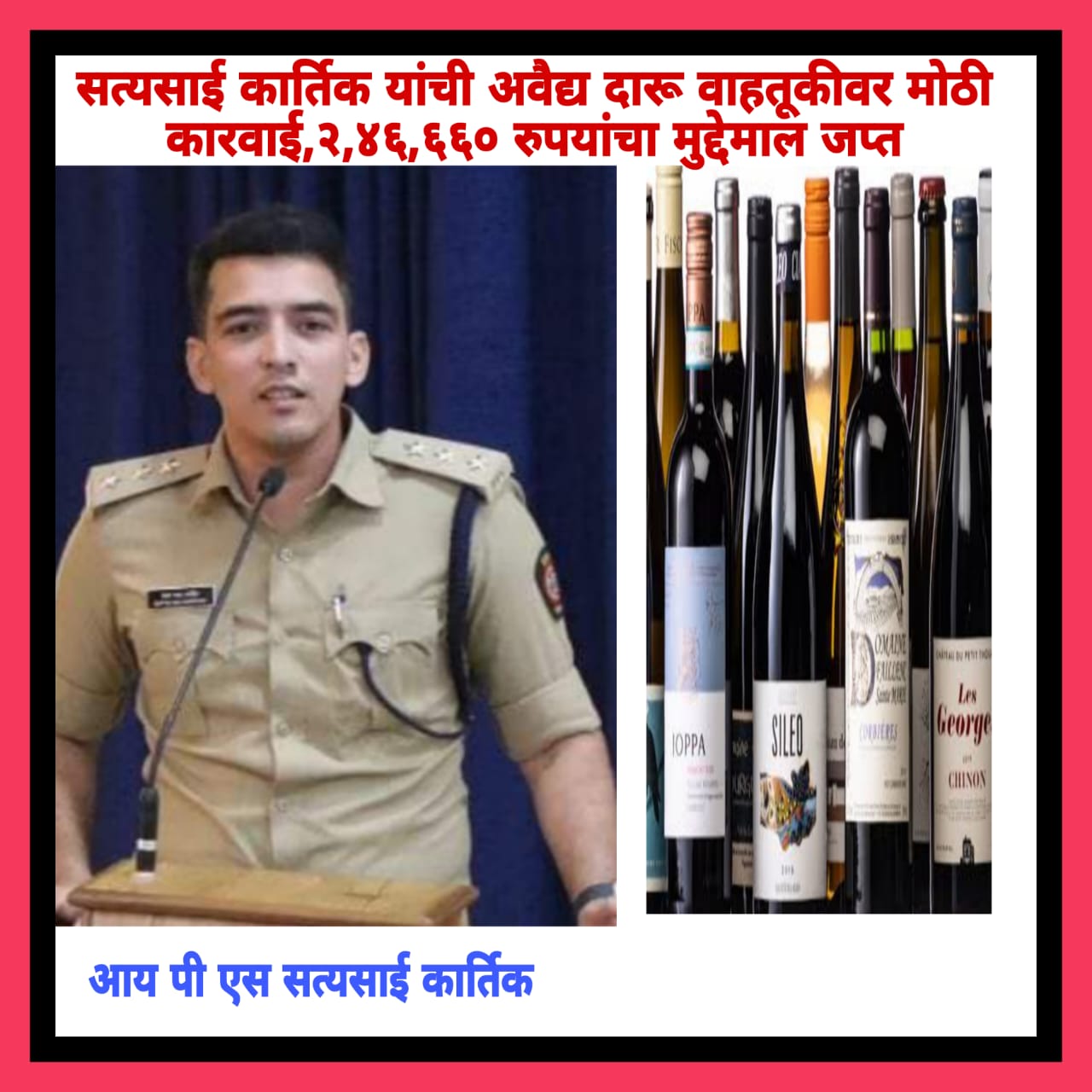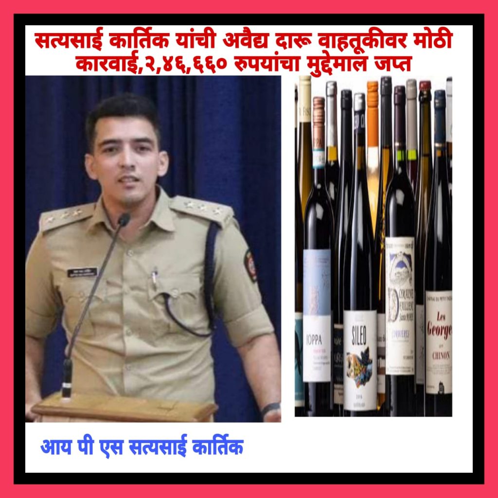 सत्यसाई कार्तिक यांची अवैद्य दारू वाहतूकीवर मोठी कारवाई,२,४६,६६० रुपयांचा मुद्देमाल जप्त