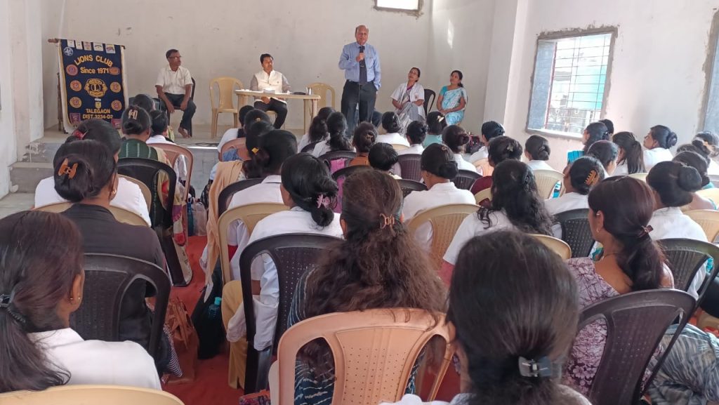 मावळ मराठा न्युज :-तळेगाव,अथर्व संस्था संचलित नरसिंग ड्युटी असिस्टंट कोर्सच्या विद्यार्थिनींना भैरवनाथ मंदिर कान्हे येथे लायन अनिकेत काळोखे यांच्या अध्यक्षतेखाली हा समारंभ साजरा झाला. ऍक्टिव्हिटी चेअरमन लायन दीपक बाळसराफ,ज्येष्ठ लायन महेश शहा, लायन प्रियंका काळोखे,संस्थेच्या संचालिका सौ माया येवले, आणि श्री विजय येवले,डॉ.सीमा शिंदे हेही या समारंभास विद्यार्थिनीसह उपस्थित होते. अध्यक्ष डॉ. अनिकेत काळोखे यांनी उपस्थितांचे स्वागत केले. त्यानंतर आपल्या प्रास्ताविकात वैद्यकीय व्यवसायातील परिचारिकेच्या अत्यंत महत्त्वाच्या भूमिकेविषयी आपलं मनोगत व्यक्त केलं. ऍक्टिव्हिटी चेअरमन दीपक बाळसराफ यांनी प्रमुख वक्ते ला. डॉ.शाळीग्राम भंडारी यांची समर्पक शब्दात ओळख करून दिली. तसेच विविध विषयावरील व्याख्यानमाला आयोजित करण्यामागील आपल्या लायन्स क्लबची भूमिका, ऍक्टिव्हिटी चेअरमन या नात्याने स्पष्ट केली. ला.डॉ. भंडारीनी आपल्या पन्नास वर्षाच्या वैद्यकीय व्यवसायातील अनुभवाची शिदोरीच- संत वचनांचा आधार घेऊन विद्यार्थिनीन समोर सादर केली! त्यात अर्थपूर्ण काव्यपंक्ती- शेरोशायरी आणि वैद्यकीय व्यवसायातील प्रत्यक्ष घडलेल्या घटनांचा यथोचित उल्लेख करून विद्यार्थिनींना अंतर्मुख केले! हा रुग्ण सेवेचा वसा आपण मनापासून स्वीकारलेला आहे त्यामुळे त्याचं ओझं कधीच बाळगू नका उलट मिळालेल्या रुग्ण सेवेच्या संधीचं सोनं करा हा संदेश डॉक्टरांनी आपल्या मनोगतात व्यक्त केला! आपल्यासमोर असलेला रुग्ण हा प्रत्यक्ष परमेश्वरच आहे असे समजूनच त्याची सेवा करा! त्यामुळे आपण स्वतः आणि इतरांनाही आनंद देणारे कैवल्याचे धनी होणार आहात याची खात्री बाळगा! भंडारी डॉक्टरांनी विद्यार्थिनींशी साधलेल्या संवादातील प्रत्येक शब्द विद्यार्थिनींनी आपल्या जीवाच कान देऊन ऐकल्यामुळे फीडबॅक देताना प्रत्येक विद्यार्थिनीं अतिशय भाऊक आणि संवेदनशील झाल्या होत्या. आणि तीच खऱ्या अर्थाने व्याख्यान यशस्वी होण्याची खरी पावती होती.ज्येष्ठ ला.महेश भाई शहा यांनीही विद्यार्थिनींना त्यांच्या हातून होणाऱ्या भविष्यकालीन रुग्णसेवेस मनःपूर्वक शुभेच्छा दिल्यात. संचालिका सौ माया येवले यांनी संस्थेची माहिती अत्यंत ओघवत्या शब्दात केली.संचालक श्री विजय येवले आणि उपस्थित विद्यार्थिनींच्या शुभहस्ते व्यासपीठावरील सर्व मान्यवरांचे यथोचित सत्कार करण्यात आले.डॉक्टर सीमा शिंदेनी अत्यंत मृदू शब्दात उपस्थित मान्यवरांचे मनःपूर्वक आभार मानलेत.लायन सौ प्रियंका काळोखे यांनी हा समारंभ यशस्वी होण्यासाठी विशेष परिश्रम घेतलेत.