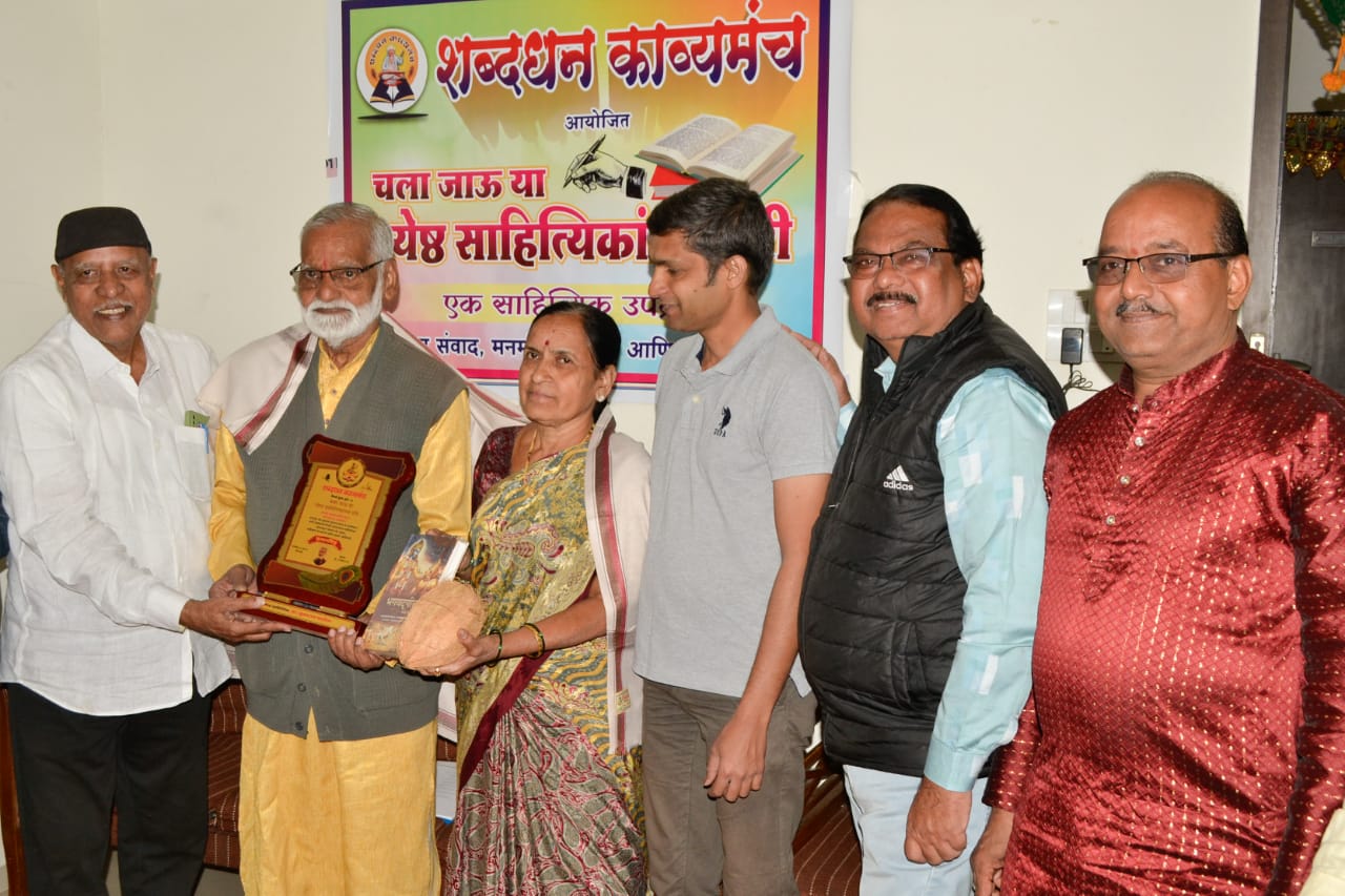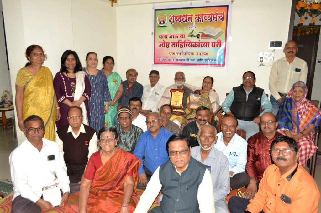 मावळ मराठा न्युज :-पिंपरी (प्रदीप गांधलीकर)दिनांक : २३ डिसेंबर २०२३) “दगडातून फुटणारा पाझर म्हणजे माझे साहित्य आहे; तसेच आईकडूनच मी साहित्याचे धडे शिकलो!” असे भावोत्कट उद्गार ज्येष्ठ साहित्यिक प्रा. तुकाराम पाटील यांनी रॉयल रोहाना गृहसंकुल, वाल्हेकरवाडी रस्ता, चिंचवड येथे शुक्रवार, दिनांक २२ डिसेंबर २०२३ रोजी काढले. शब्दधन काव्यमंच आयोजित ‘चला जाऊ या ज्येष्ठ साहित्यिकांच्या घरी…’ या विशेष उपक्रमांतर्गत ज्येष्ठ साहित्यिक नंदकुमार मुरडे यांच्या हस्ते प्रा. तुकाराम पाटील यांचा प्रा. मंगला पाटील यांच्यासमवेत हृद्य सन्मान करण्यात आला. स्मृतिचिन्ह, शाल, श्रीफळ आणि गीता जयंतीचे औचित्य साधून भगवद्गीता असे सन्मानाचे स्वरूप होते. याप्रसंगी मनोगत व्यक्त करताना प्रा. तुकाराम पाटील पुढे म्हणाले की, “आईच्या कृपाशीर्वादाने मला उच्चशिक्षणाची संधी मिळाली. निरक्षर आईने जात्यावर दळताना म्हटलेल्या गाण्यांमधून माझ्यातील कवी उदयास आला. बॅ. पी. जी. पाटील, ‘मृत्युंजय’कार शिवाजी सावंत, सुरेश भट या दिग्गजांचे पाठबळ, प्रोत्साहन आणि मार्गदर्शन यामुळे मी साहित्यिक म्हणून घडलो. जगण्याच्या संघर्षात आलेल्या अनुभवांनी मला दगडासारखे घट्ट बनवले अन् याच संचिताला मी शब्दरूप दिले. नवोदित साहित्यिकांनी प्रसिद्धीचा हव्यास न धरता आत्मसंतुष्टीसाठी लेखन करावे!” असे आवाहन त्यांनी केले. यावेळी ज्येष्ठ साहित्यिक राज अहेरराव यांनी तुकाराम पाटील यांच्या कवितांचे रसग्रहण केले. नंदकुमार मुरडे यांनी आपल्या अध्यक्षीय मनोगतातून, “वंदनीय व्यक्तिमत्त्वांना सन्मानित केल्याने संस्कृतीचाच सन्मान होतो!” असे मत मांडले.तानाजी एकोंडे यांनी सादर केलेल्या “ओंकार स्वरूपा…” या भक्तिगीताने कार्यक्रमाचा प्रारंभ करण्यात आला. सुभाष चव्हाण यांनी प्रास्ताविकातून, “सुमारे पन्नास वर्षांहून अधिक काळ सातत्याने विविध साहित्यप्रकारांची साधना करून प्रा. तुकाराम पाटील यांनी सुमारे चाळीस पुस्तकांचे लेखन केले आहे!” अशी माहिती दिली. शब्दधन काव्यमंचाचे संस्थापक – अध्यक्ष सुरेश कंक यांनी विविध प्रसंगांचे कथन करून प्रा. पाटील यांच्या समाजातील वैविध्यपूर्ण प्रतिमा अधोरेखित केल्या; तर प्रा. मंगला पाटील यांनी कौटुंबिक आठवणींना उजाळा दिला. त्याचबरोबर राधाबाई वाघमारे, कैलास भैरट, शोभा जोशी, रघुनाथ पाटील, राजेंद्र घावटे, सुलभा सत्तुरवार, शरद शेजवळ यांनी मनोगतांच्या माध्यमातून प्रा. तुकाराम पाटील यांच्या व्यक्तिमत्त्वाचे विविध पैलू विशद केले. आय. के. शेख, सविता इंगळे, नीलेश शेंबेकर, जयश्री श्रीखंडे, आनंद मुळूक, सुभाष चटणे, राजेंद्र पगारे यांनी शुभेच्छा दिल्या. मुरलीधर दळवी, डॉ. श्रीश पाटील, शरद काणेकर 