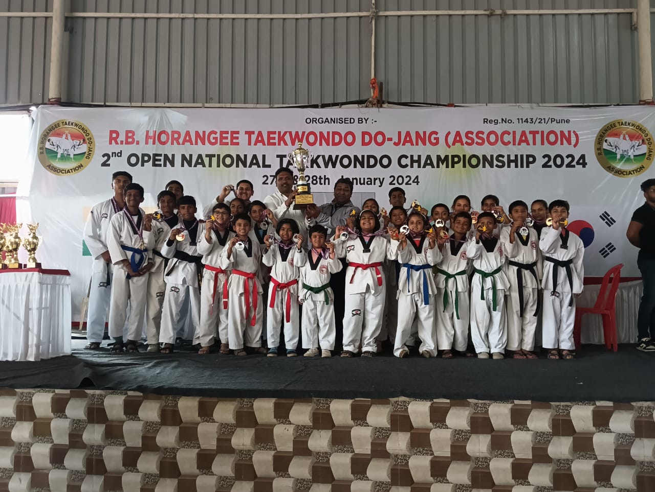 मावळ मराठा न्यूज, पुणे :-शनिवार दिनांक २७ जानेवारी २०२४ व रविवार दिनांक २८ जानेवारी २०२४ रोजी प्रभु श्री लॉन्स, चंदननगर, खराडी पुणे येथे २ री देश पातळीवर तायक्वांदो स्पर्धा २०२४ ही स्पर्धा आर.बी. होरंगी तायक्वांडे असोसिएशन यांच्या तर्फे आयोजित केली होती. त्या मावळातील विद्यार्थ्यांनी चमकदार कामगीरी करुन मावळाचे नाव उज्वल केले. या स्पर्धेत विजयी होणाऱ्या विद्यार्थ्यांचे नाव पुढील प्रमाणेसुवर्ण पदकाचे मानकरी१. अमोघ स्वप्निल जळगावकर, २. अव्देत दत्तात्रय डावखर, ३. निता पंकज कारखानिस, ४. आरव संतोष गुरुस्थले, ५. हर्षवर्धन राजु वाघुले, ६. अर्जुन दत्तात्रय गोपाळघरे, ७. ओवी विनीत मराठे, ८, अतुल्य संतोष नागरगोजे, ९. देवेंद्र दिलीप मोरया, १०. प्रदुन्य सचिन ढोले, ११. साची सोमनाथ बेनगुडे, १२. वंश कालुचंद जैन, १३. वरुणे दत्तात्रय गोपाळघरे, १४. शिवम श्रीरंग पाटील, १५. अक्षज अजय उडपी, १६. नव्या धनाजी थोरात, १७. सिद्धी संदिप सुर्यवंशी, १८. सुमन सुधाकरन कोणार्क, १९. तनुश विशाल जांभळे, २०. नक्ष योगेश राठोड, २१. दक्ष योगेश राठोड, २२. अव्देत अनिरुद्ध केदारी, २३. उत्कर्ष अभिजीत फलटणे, २४. आर्णवी संतोष गुरुस्थले, २५. रुही संदिप पवार,रजत पदकाचे मानकरी१. हर्षवर्धन राजु वाघुले, २. ओवी विनीत मराठे, ३. वंश कालुचंद जैन, ४. वरुणे दत्तात्रय गोपाळघरे, ४. शिवम श्रीरंग. पाटील, ५. अक्षज अजय उडपी, ६. सिद्धी संदिप सुर्यवंशी, ७. तनुश विशाल जांभळे, ८. उत्कर्ष अभिजीत फलटणे, ९. भक्ती भरत बनसोडेकांस्य पदकाचे मानकरी१. अव्देत दत्तात्रय डावखर, २. आरव संतोष गुरुस्थले, ३. प्रदुन्य सचिन ढोले, ४. नव्या धनाजी थोरात, ५. सुमन सुधाकरन कोणार्क, ६. नक्ष योगेश राठोड, ७. दक्ष योगेश राठोड, ८. अव्देत अनिरुद्ध केदारी, ९. आर्णवी संतोष गुरुस्थले, १०. रुही संदिप पवारया सर्व विजयी विद्यार्थ्यांचे मार्गदर्शक मास्टर राजु अगरवाल आंतरराष्ट्रीय ६ वे डॅन ब्लॅक बेल्ट,वर्ड रेकॉर्ड इंडिया होल्डर यांनी केले. गेली ४० वर्षापासुन ते मावळामध्ये आपल्या कोरीयन तायक्वांडो अकॅडमी ऑफ इंडिया (रजि.) तर्फे विद्यार्थ्यांना प्रगती पथावर घडवायचे काम करत आहे. विद्यार्थ्यांच्या यशाबाबत त्यांच्या पालकांना त्यांच्याबद्दल अभिमान वाटत आहे. त्यांच्या पालकांनी कोरीयन तायक्वांडो अकॅडमि ऑफ इंडिया चे मार्गदर्शक मास्टर राजु अगरवाल यांचे आभार मानले आहे.