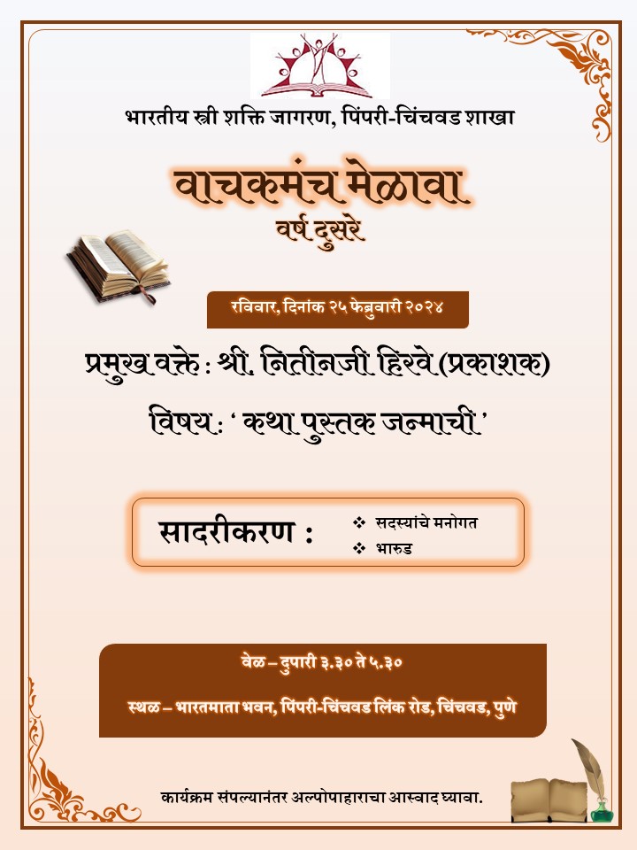भारतीय स्त्री शक्ती जागरण,पिंपरी,चिंचवड शाखेच्या वतीने २५ फेब्रुवारीला वाचकमंच मेळावा