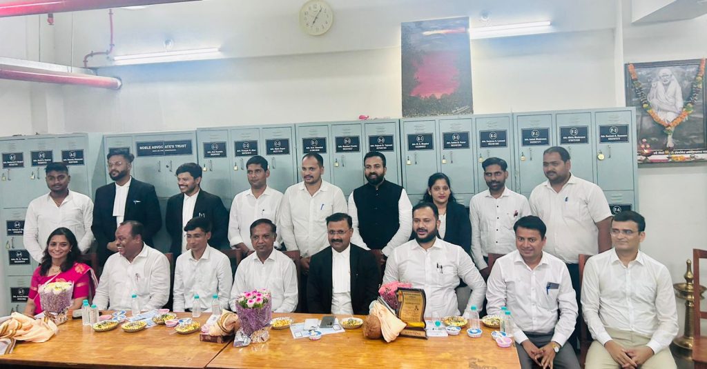 पिंपरी (प्रदीप गांधलीकर )दिनांक : ११ मे २०२४) पिंपरी नेहरूनगर न्यायालयातील न्यायाधीश आर. एस. वानखेडे, आर. एम. गिरी, पी. सी. फटाले, एस. पी. कुलकर्णी यांची विविध ठिकाणी बदली झाली असल्यामुळे पिंपरी-चिंचवड ॲडव्होकेटस् बार असोसिएशनच्या वतीने शुक्रवार, दिनांक १० मे २०२४ रोजी वकील बार रूम येथे निरोप समारंभाचे आयोजन करण्यात आले होते. त्यानिमित्त नेहरूनगर न्यायालयातील न्यायाधीश एन. आर. गजभिये, बी. डी. चौखंट, एम. जी. मोरे, ए. एम. बगे, एम. ए. आवळे, व्ही. एन. गायकवाड तसेच आजी माजी अध्यक्ष आणि वकील बांधव मोठ्या प्रमाणात उपस्थित होते. मान्यवरांचे स्वागत पिंपरी – चिंचवड ॲडव्होकेटस् बार असोसिएशनचे अध्यक्ष आणि कार्यकारणीद्वारे शाल, श्रीफळ, पुष्पगुच्छ देऊन करण्यात आले. विविध वकील बांधवांनी आपल्या मनोगतांमधून न्यायाधीश साहेबांसाठी शुभेच्छा व्यक्त केल्या. याप्रसंगी पिंपरी – चिंचवड ॲडव्होकेटस् बार असोसिएशनच्या वतीने अल्पोपाहाराचे आयोजन करण्यात आले होते. वकील बांधवांनी त्याचा आस्वाद घेत जुन्या हास्यविनोदासह आठवणींना उजाळा दिला. डिजीनोटीस एप्लीकेशनचे ॲप डेमो व प्रेझेंटेशन यशपाल बावीसकर आणि टीमने केले. त्यांनाही वकील बांधवांनी चांगला प्रतिसाद दिला.कार्यक्रमाचे संयोजन पिंपरी – चिंचवड ॲडव्होकेटस् बार असोसिएशनचे अध्यक्ष अध्यक्ष ॲड. रामराजे भोसले, उपाध्यक्ष ॲड. प्रतीक्षा खिलारी, सचिव ॲड. धनंजय कोकणे, महिला सचिव ॲड. मोनिका सचवाणी, सहसचिव ॲड. उमेश खंदारे, खजिनदार ॲड. अजित खराडे, ॲाडिटर ॲड. संदीप तापकीर, सदस्य ॲड. अस्मिता पिंगळे, ॲड.आयाज शेख, ॲड. फारूख शेख, ॲड. दशरथ बावकर, ॲड. स्वाती गायकवाड, ॲड. मीनल दर्शले यांनी केले. सचिव ॲड. धनंजय कोकणे यांनी सूत्रसंचालन केले. सदस्य ॲड. आयाज शेख यांनी आभार मानले.