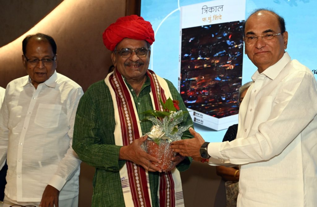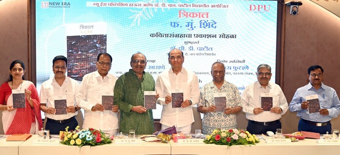मावळ मराठा न्युज :-पिंपरी,(प्रदीप गांधलीकर) दिनांक : १७ मे २०२४ “प्रा. फ. मुं. शिंदे यांची कविता फुले, आंबेडकर यांच्या विचारांचे प्रतिनिधित्व करते; तसेच ओशो आणि खलील जिब्रानच्या तत्त्वज्ञानाशी ती नाते सांगते!” असे विचार डॉ. डी. वाय. पाटील विद्यापीठाचे कुलपती डॉ. पी. डी. पाटील यांनी डॉ. डी. वाय. पाटील मेडिकल कॉलेज हॉल, पिंपरी येथे शुक्रवार, दिनांक १७ मे २०२४ रोजी व्यक्त केले. प्रा. फ. मुं. शिंदे लिखित आणि न्यू ईरा पब्लिशिंग हाऊस, पुणे प्रकाशित ‘त्रिकाल’ या कवितासंग्रहाचे प्रकाशन करताना डॉ. पी. डी. पाटील बोलत होते. ९५व्या अखिल भारतीय मराठी साहित्य संमेलनाचे अध्यक्ष भारत सासणे अध्यक्षस्थानी होते. ज्येष्ठ विडंबनकार रामदास फुटाणे, समीक्षक प्रा. डॉ. रमेश वरखेडे, समीक्षक प्रा. डॉ. राजशेखर शिंदे, महाराष्ट्र साहित्य परिषद – पुणेचे कार्याध्यक्ष प्रा. मिलिंद जोशी, प्रकाशिका अमृता तांदळे यांची व्यासपीठावर प्रमुख उपस्थिती होती. डॉ. पी. डी. पाटील पुढे म्हणाले की, “८९व्या अखिल भारतीय मराठी साहित्य संमेलनानंतर या परिसरात अनेक साहित्यिक कार्यक्रमांचे योग आले. ‘त्रिकाल’ हा काव्यसंग्रह मला अर्पण केला आहे; आणि एक रसिक म्हणून मी आनंदाने त्याचा स्वीकार करतो. आपल्या कवितांच्या माध्यमातून फ. मुं. नी वाचकांच्या मनात आदराचे स्थान मिळविले आहे!” प्रा. डॉ. राजशेखर शिंदे यांनी, “‘त्रिकाल’ हा गंभीर कवितांचा संग्रह आहे. जणू काही २५४ तुकड्यांची ही एक सलग कविता आहे. गझल आणि वही या काव्यप्रकारांपेक्षा वेगळे असे हे द्रैष्टान्तिक काव्यसर्जन आहे!” अशी मीमांसा केली; तर प्रा. डॉ. रमेश वरखेडे यांनी काव्यसंग्रहाची विस्तृत समीक्षा करताना ‘त्रिकाल’ची व्याप्ती गाथा काव्यसंग्रहासारखी आहे, असे मत मांडले. प्रा. मिलिंद जोशी यांनी, सामाजिक भान हे फ. मुं. च्या कवितेचे वैशिष्ट्य आहे, असे गौरवोद्गार काढले; तर रामदास फुटाणे यांनी, बोलण्यात खट्याळपणा आणि अंतरंगात वेदना हे फ. मुं. चे स्वभाववैशिष्ट्य आहे, असे प्रतिपादन केले.कविवर्य प्रा. फ. मुं. शिंदे यांनी आपल्या मनोगतातून, “ज्ञानेश्वरमाउलींपासून सर्जनाची सर्व कृतज्ञता रसिकांप्रति प्रतीत झाली आहे. रसिकाला जे सांगायचे असते तेच कवी कवितेच्या माध्यमातून लिहीत असतो!” अशा भावना व्यक्त करून,”मनासारखे जगण्यास आता मन होत नाहीआपले सुख बघण्यास आता मन होत नाही!”तसेच “खोटे चालते पुढे पाय मोडला सत्याचा…”या कवितांसह ‘आई’ या सुप्रसिद्ध कवितेचे सादरीकरण केले.भारत सासणे यांनी आपल्या अध्यक्षीय मनोगतातून, “तांबे, मर्ढेकर, ग्रेस या मांदियाळीतील फ. मुं. शिंदे हे एक महत्त्वाचे कवी आहेत. वरकरणी विनोदी आणि गमतीशीर वाटणारा हा कवी समजून घेताना विश्वकारुण्य हा भाव गृहीत धरावा लागेल