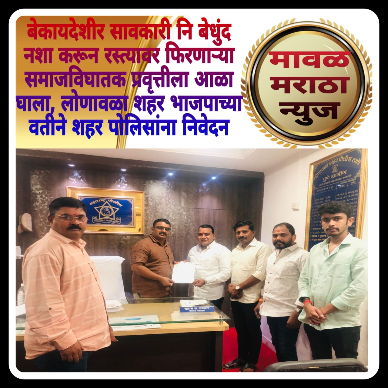 बेकायदेशीर सावकारी नि बेधुंद नशा करून रस्त्यावर फिरणाऱ्या समाजविघातक प्रवृत्तीला आळा घाला, लोणावळा शहर भाजपाच्या वतीने शहर पोलिसांना निवेदन