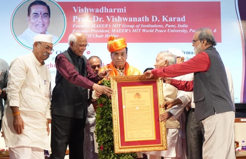 मावळ मराठा न्यूज :-पुणे, शतकभरापूर्वी शिकाको शहरात भारत विश्वगुरू होणार हे स्वामी विवेकानंदांनी पाहिलेले स्वप्न, सत्यात उतरविण्याचा संकल्प घेतलेले प्रा.डाॅ.विश्वनाथ कराड हे खऱ्याअर्थाने नवनिर्मितीचा एक प्रचंड मोठा स्त्रोत आहेत. ‘पाॅलिमर इंजिनिअरिंग’ ही संकल्पना कोणीही मांडली नसताना, डाॅ.कराड ती माझ्याकडे घेवून आले. त्यावेळी आपण, तिर्थक्षेत्रांकडून ज्ञानक्षेत्रांकडे वळायला हवे, अशी मी मांडलेली संकल्पना डाॅ.कराडांनी सत्यात उतरवून दाखवली. त्यामुळे अखंड विश्वाला शांतीचा संदेश देणारे डाॅ.कराड हे मला नवनिर्मितीचे एक विद्यापीठच वाटतात, अशी भावना जगप्रसिद्ध शास्त्रज्ञ पद्मविभूषण डाॅ.रघुनाथ ए. माशलेकर यांनी व्यक्त केले. पुणे शहरातील विविध सामाजिक संस्था व समस्थ पुणेकरांच्या वतीने माईर्स एमआयटी शिक्षण समुहाचे संस्थापक अध्यक्ष विश्वधर्मी प्रा.डाॅ.विश्वनाथ दा.कराड यांचा ‘विश्वशांतीरत्न’ या नागरी पुरस्काराने गौरव करण्यात आला. तसेच, सीओईपी टेक्नाॅलाॅजी विद्यापीठाच्या माजी विद्यार्थी संघटनेच्यावतीने डाॅ.कराडांचा ‘जीवनगौरव’ पुरस्कारानेही गौरव करण्यात आला. सीओईपीच्या सभागृहात झालेल्या समारंभात डाॅ. माशलेकर बोलत होते. याप्रसंगी, जगप्रसिद्ध संगणक शास्त्रज्ञ डाॅ.विजय भटकर, सिक्कीमचे माजी राज्यपाल खा.श्रीनिवास पाटील, पंडीत वसंत गाडगीळ, ह.भ.प. बापूसाहेब मोरे, नॅकचे माजी चेअरमन डाॅ.भूषण पटवर्धन, अखिल भारतीय मराठी साहित्य संमेलनाचे माजी अध्यक्ष डाॅ.श्रीपाल सबनीस, माजी आ.उल्हास दादा पवार, सीओईपी तंत्रज्ञान विद्यापीठाचे कुलगुरू डाॅ.सुनील बिरूड, डाॅ.राजेंद्र शेंडे, डाॅ.प्रमोद चौधरी, आचार्य रतनलाल सोनाग्रा, डाॅ.एन.एस.पठाण, सीओईपी माजी विद्यार्थी संघटनेचे अध्यक्ष भरत गित्ते आदी मान्यवर उपस्थित होते. डाॅ.माशलेकर यांनी यावेळी, पुण्यात नुकत्याच घडलेल्या ‘हिट अँड रन’ प्रकरणावरही टिपण्णी करताना, आजच्या युवापीढीला मुल्यसंवर्धनाचे महत्व पटवून देण्याची गरज असल्याची भावनाही व्यक्त केली. याप्रसंगी बोलताना डाॅ. भटकर म्हणाले, स्वामी विवेकानंदांनी शिकागोतील ज्या सभागृहात १३१ वर्षांपूर्वी भाषण केले, तिथेच डाॅ.कराडांना भाषण करण्याची संधी मिळाली यापेक्षा अभिमानाची गोष्ट ती कोणती? त्यामुळे, सध्याच्या काळाता त्यांच्याप्रमाणे विश्वशांतीचा दूत शोधूनही सापडणार नाही, असे गौरोवोद्गारही त्यांनी काढले.यावेळी बोलताना, डाॅ. सबनीस यांनी ‘रामकृष्ण हरीच्या जपात डीलीट पदवी स्विकारणारे, डाॅ.विश्वनाथ कराड’ असा उल्लेख करत आपल्या भाषणाची सुरुवात केली. पुढे ते म्हणाले की, डाॅ.कराडांनी केलेल्या विश्वशांती दौऱ्यात सर्वधर्मांच्या धार्मिक स्थळांना भेटीगाठी दिल्या. 