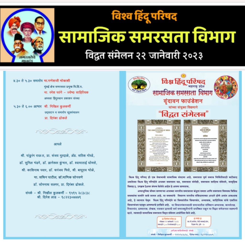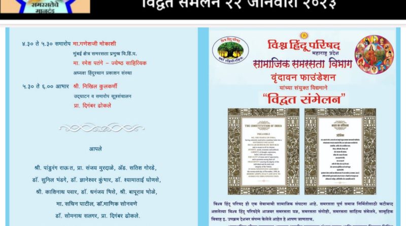 विश्व हिंदू परिषदेच्या महाराष्ट्र प्रदेश सामाजिक समरसता विभागाच्या वतीने रविवारी पुण्यात एक दिवसीय विद्वत संमेलन