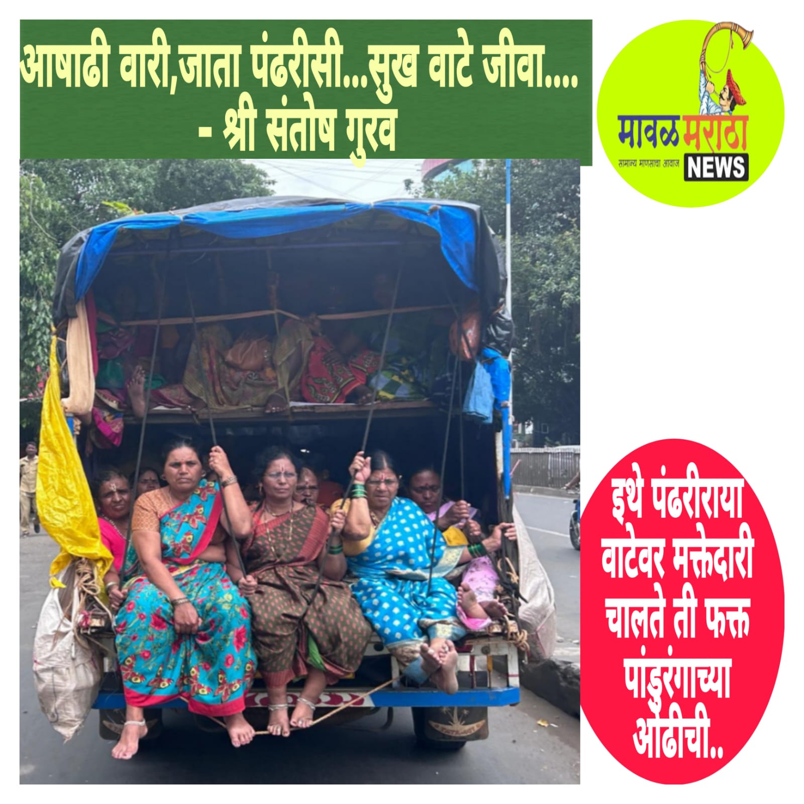 मावळ मराठा न्युज :- दि.४/०५/२०२४सुख, समाधान ही वृत्तीची संकल्पना आहे.परिस्थिशी त्याचा संबंध नसतो.परिस्थिती कशीही असो,तुमची वृत्ती सुखी असेल तर परिस्थितीत बदल होवू शकतो,होतो.वारकर्यांची वृत्ती विठ्ठल नामात सुख शोधणारी आहे.तिथे परिस्थिती आड येत नाही.हाफ तिकिटात पण जाता आलं असतं आषाढीच्या आधी एक दिवस लालपरीत बसून पण तिथे वारीतला भाव,नामजागर ही मजा नाही,हे सुख नाही.वर्हाडाच्या ट्रकात फाळक्यावर बसून प्रवासाची मक्तेदारी तरुणांची, इथे पंढरीराया वाटेवर मक्तेदारी चालते ती फक्त पांडुरंगाच्या ओढीची……मग संपतो स्री-पुरूष,उच्च-नीच,राव आणि रंकातला, सुखसुविधा – अडचणीतला भेदाभेद….सगळे फक्त वैष्णव…..वयोमानानुसार चालून आलेला थकवा दूर करण्यासाठी घेतलेल्या या अडचणीच्या दिसणाऱ्या प्रवासात पण मनाला सुखावह वाटणार्या जागेत पायांना मिळणारी विश्रांती फार मोलाची ठरते आणि फाळक्यावर बसण्याचा आनंद तो काय फक्त पुरुषांनीच घ्यायचा? दिवस सगळ्यांचेच येतात फक्त योग्य संधीची वाट पहावी लागते.आणि संयमाचे दुसरे नाव नारीशक्ती.दडवंत आहे या माऊलींना,रामकृष्ण हरी छायाचित्र- प्राचार्य शशिकांत साबळे,शासकीय औद्योगिक प्रशिक्षण संस्था,पिंपरी चिंचवड पुणे