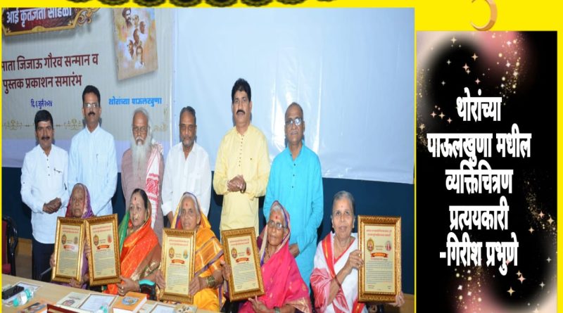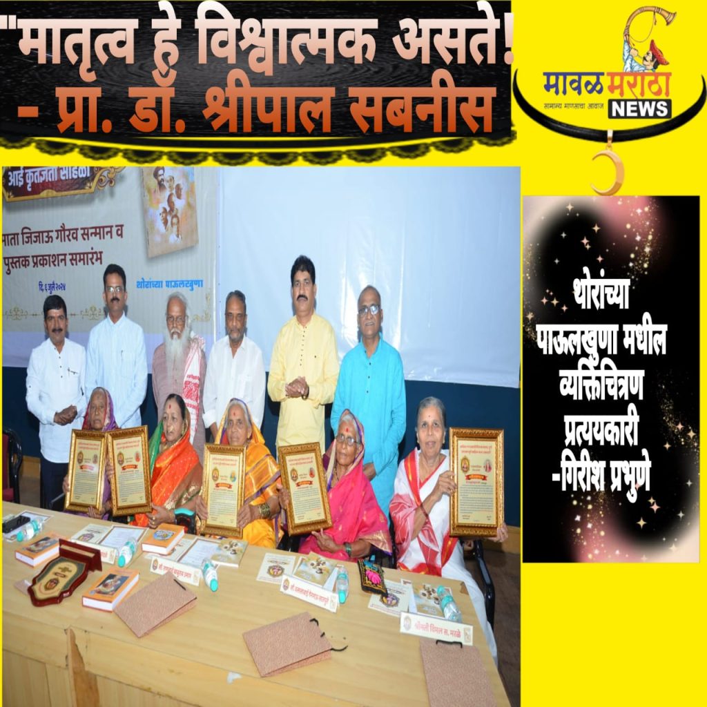 पिंपरी (प्रदीप गांधलीकर)दिनांक : ०७ जुलै २०२४”ज्याप्रमाणे दुःख हे डावे – उजवे नसते, त्याप्रमाणे मातृत्व हे विश्वात्मक असते. ते जात, धर्म या पलीकडचे असते. ‘थोरांच्या पाऊलखुणा’मधील नायक हे सर्व जातीधर्माचे प्रतिनिधित्व करतात!” असे विचार प्रा. डॉ. श्रीपाल सबनीस यांनी ऑटोक्लस्टर सभागृह, जुना मुंबई – पुणे हमरस्ता, चिंचवड येथे शनिवार, दिनांक ०६ जुलै २०२४ रोजी व्यक्त केले. आशिया मानवशक्ती विकास संस्था – पुणे आणि नारायण सुर्वे साहित्य कला अकादमी यांच्या संयुक्त विद्यमाने आयोजित आई कृतज्ञता सोहळा तसेच बाजीराव सातपुते लिखित ‘थोरांच्या पाऊलखुणा’ या पुस्तकाच्या प्रकाशन समारंभात प्रा. डॉ. श्रीपाल सबनीस बोलत होते. महाराष्ट्र कामगार कल्याण मंडळाचे कल्याण आयुक्त रविराज इळवे कार्यक्रमाच्या अध्यक्षस्थानी होते; तसेच ज्येष्ठ समाजसुधारक पद्मश्री गिरीश प्रभुणे, नारायण सुर्वे साहित्य कला अकादमीचे अध्यक्ष सुदाम भोरे, आशिया मानवशक्ती विकास संस्थेचे अध्यक्ष बाजीराव सातपुते, ज्येष्ठ प्रकाशक नितीन हिरवे यांची व्यासपीठावर प्रमुख उपस्थिती होती.याप्रसंगी आई कृतज्ञता सोहळ्यांतर्गत कमल खांदवे, राणूबाई उमाप, वत्सलाबाई सातपुते, विमल मरळे, सुभद्रा वाल्हेकर या मातांना राजमाता जिजाऊ कृतज्ञता सन्मान प्रदान करून सन्मानित करण्यात आले. सन्मानचिन्ह, मानपत्र, ग्रंथ आणि शाल असे सन्मानाचे स्वरूप होते.पुरुषोत्तम सदाफुले यांनी सन्मानार्थींशी सुसंवाद साधून त्यांच्या भावना जाणून घेतल्या.पद्मश्री गिरीश प्रभुणे यांनी, “‘थोरांच्या पाऊलखुणा’मधील व्यक्तिचित्रण प्रत्ययकारी आहे!” असे गौरवोद्गार काढून, “जिजाऊ या केवळ राजमाताच नव्हत्या तर त्या राष्ट्रमाता होत्या. देव, देश, धर्म, महिला आणि संस्कृती यांच्यासाठी अत्यंत प्रतिकूल काळात त्यांनी महाराष्ट्रधर्म जागवला!” असे विचार मांडले. सुदाम भोरे यांनी, “मातांचा सन्मान करण्याएवढे आपण मोठे नाहीत; पण यानिमित्ताने त्यांचे आशीर्वाद घेण्याची संधी मिळाली!” अशी भावना व्यक्त केली. नितीन हिरवे यांनी, “आज सभागृहात पंढरी अवतरली आहे!” असे मत व्यक्त केले. बाजीराव सातपुते यांनी प्रास्ताविकातून, “हयात असताना असंख्य माता सन्मानापासून वंचित राहतात म्हणून आज आवर्जून प्रातिनिधिक मातांना सन्मानित करण्यात येत आहे!” अशी भूमिका मांडली. रविराज इळवे यांनी अध्यक्षीय मनोगतातून, “आजही समाज चांगुलपणाची पाठराखण करतो!” असे प्रतिपादन केले.सुवासिनींच्या हस्ते पाचही मातांचे पूजन करून तसेच ओवी सातपुते या चिमुरडीच्या हस्ते वृक्षपूजन करून कार्यक्रमाचा प्रारंभ करण्यात आला. मानसी चिटणीस यांनी मानपत्राचे वाचन केले. अरुण गराडे, राजेंद्र वाघ, प्रभाकर वाघोले, 