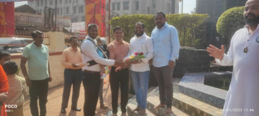 मावळ मराठा न्यूज – लोणावळा,दरवर्षीप्रमाणे यावर्षी २६ जानेवारी प्रजासत्ताक दिनाच्या निमित्ताने लोणावळा व ग्रामीण परिसरातील राष्ट्रीय खेळाडू व विविध प्रकारात प्राविण्य मिळवलेले तरुण-तरुणींचा,यात श्री.शिववंदना समुह आणि या खेळाडूंच्या हस्ते छत्रपती शिवाजी महाराज मूर्तीला पुष्पहार अर्पण करण्यात आला. लोणावळा ते मुंबई ११० किलोमीटर प्रवास करणारे सायकलवीर कु.शैलश नितेशजी कुटे,कु.शर्वरी नितेशजी कुटे,कु.अवधूत कैलास कडूसकर,कु.अनघ अमोल रसाळ १० वर्षच्या मुलांचा तसेच राष्ट्रीय खेळाडू वेटलिफ्टिंग/ पाॅवर लिफ्टिंग खेळाडूचे कु.तनिष्क भरतजी बच्चे,कु. खुशी बलबहादुर बडेला, १४ वर्षीय कु.अक्षद तिकोणेनागफणी (ड्युक्सनोज) सुळका ३००फुट. यशस्वी चढाई,व कौतुकास्पद कामगिरी करणाऱ्या गिरीप्रेमींचा सन्मान लोणावळ्यांमधील शिववंदना घेणारे यांचा सर्वांच्या हस्ते करण्यात आला. संजयजी मोरे यांचाही यावेळी सत्कार करण्यात आला.गेली २३ वर्षे रोज ३६५ दिवस न चुकता छत्रपती शिवाजी महाराजांना पुष्पहार घालण्यात येतो. यात सहभाग घेणारे सर्व हौशी शिवदुर्ग मंडळ लोणावळा अनिल विश्वासराव ,राजू बोडके, धनंजय कामत,रुपेश नांदवटे,विनायक आंबेकर,नागेश तारे, उल्हास पाळेकर, तुषार केदारी, भरत भरणे यांचा यात मोठा सहभाग असतो.