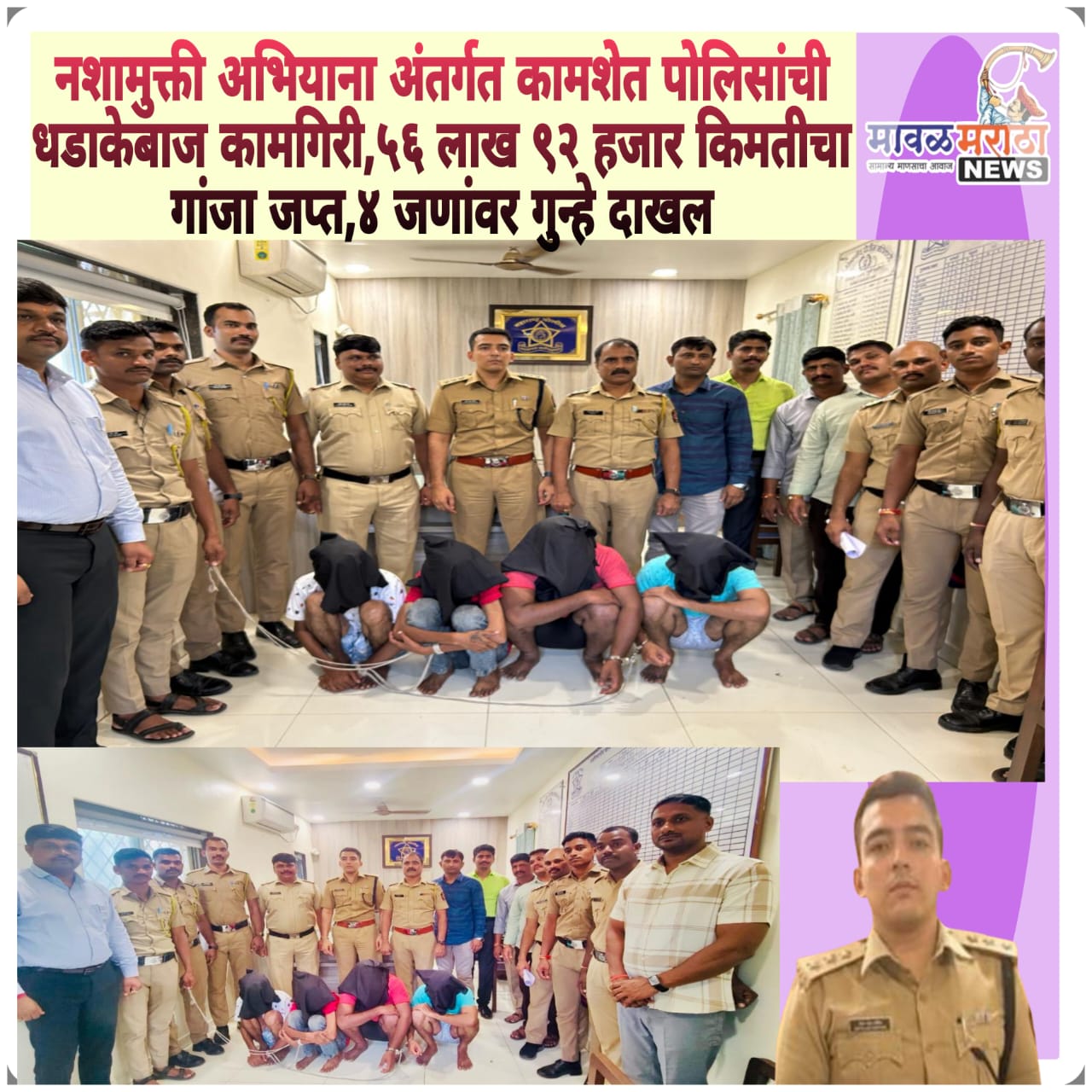 नशामुक्ती अभियाना अंतर्गत कामशेत पोलिसांची धडाकेबाज कामगिरी,५६ लाख ९२ हजार किमतीचा गांजा जप्त,४ जणांवर गुन्हे दाखल