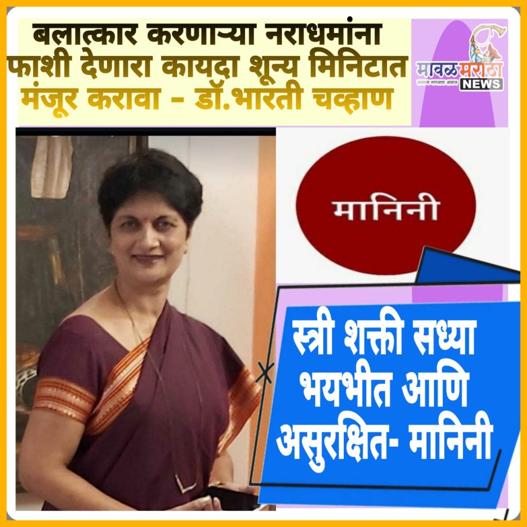 मावळ मराठा न्युज :-आळंदी,(अर्जुन मेदनकर) : अल्पवयीन मुली, मुले, युवती, महिलांवर बलात्कार, गॅंगरेप आणि हत्यांचे गुन्हे विविध माध्यमांमुळे उघडकीस येत आहेत. वर्ष २०२३ मध्ये ४ लाख ४५ हजार पेक्षा जास्त बलात्कारांच्या गुन्ह्यांची नोंद झाली आहे. देशात दर तासाला सरासरी ५० पेक्षा जास्त अशा घटना घडत आहेत. याला पायबंद घालण्यासाठी बलात्कार करणाऱ्या नराधमांना फाशी” देणारा कायदा शून्य मिनिटात मंजूर करावा अशी मागणी मानीनी फाउंडेशनच्या संस्थापक अध्यक्ष डॉ. भारती चव्हाण यांनी पंतप्रधान नरेंद्र मोदी यांना पत्र पाठवून केली आहे. पंतप्रधानांना लिहिलेल्या पत्रात म्हटले आहे की, कुटुंबाला आर्थिक हातभार लावण्याच्या उद्देशाने घरातील गृहिणी पुरुषाच्या खांद्याला खांदा लावून आज सर्व क्षेत्रात पुढे येत आहे. संपर्कासाठी ‘मोबाईल’ वापरात असलेल्या स्मार्टफोनच्या सोशल मीडियातील प्लॅटफॉर्मवर जगातील माहिती उपलब्ध आहे. परंतु, भारतात संविधानिक अधिकार आणि वैचारिक स्वातंत्र्याच्या नावाखाली अश्लीलता आणि बीभत्सतेचा नंगानाच मोबाईल मध्ये अहोरात्र सुरू आहे. यातील लाखो पोर्न वेबसाईट आणि सेन्सॉर बोर्डाच्या नियंत्रण कक्षेबाहेर असणाऱ्या ओटीटी प्लॅटफॉर्मच्या मालिकांमधून मोबाईल फोनच्या आहारी गेलेल्या युवक, युवतींच्या कामुक भावनांना उत्तेजन दिले जाते. यावर पोलीस, प्रशासनाचे नियंत्रण नाही आणि कायद्याचेही बंधन नाही. सोशल मीडियाच्या प्लॅटफॉर्मवर व अनेक वेबसाईटवर सेक्स मेडिसिन, सेक्स टॉईज, एस्कॉर्ट सर्विसच्या नावाखाली बेरोजगार युवक, युवतींना अतिरिक्त उत्पन्नाचे आमिष दाखवून वेश्याव्यवसायात ढकलले जाते. याला सर्वसामान्य गृहिणींपासून महाविद्यालयीन युवक युवतींसह बॉलीवूड, टॉलीवूड तसेच मालिकांमधील अनेक महिला बळी पडले आहेत. अमेरिका, चीन आणि अनेक प्रगत राष्ट्र व दुबई आणि इस्लामिक राष्ट्रांमध्ये अशा सोशल मीडियाचे प्लॅटफॉर्म आणि पोर्न वर बंदी आहे. चीन, दुबई, इजिप्त, अफगाणिस्तान सह काही इस्लामिक राष्ट्रांमध्ये तर बलात्काऱ्यांना खुलेआम नागरिकांसमोर फाशी दिली जाते. भारतात महिलांवर होणाऱ्या अत्याचारामुळे महत्त्वाचे योगदान देणारी स्त्री शक्ती सध्या भयभीत आणि असुरक्षित असल्याचे दिसते हे देशासाठी चांगले लक्षण नाही. ‘विकसित भारत’ हे स्वप्न पूर्ण करायचे असेल तर, “बलात्कार करणाऱ्या नराधमांना फाशी” देणारा कायदा शून्य मिनिटात मंजूर करावा आणि त्याची कडक अंमलबजावणी करावी. यासाठी कायदेमंडळातील सर्व महिला खासदारांनी पुढाकार घ्यावा. पंतप्रधान नरेंद्र मोदी आणि गृहमंत्री अमित शहा यांनी बलात्कार करणाऱ्या नराधमांना फाशी देणारा कायदा शून्य मिनिटात मंजूर करून त्याची अंमलबजावणी करण