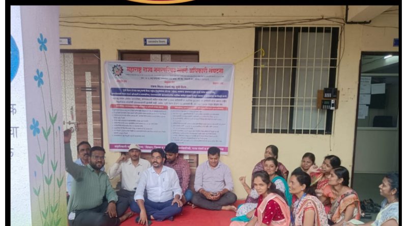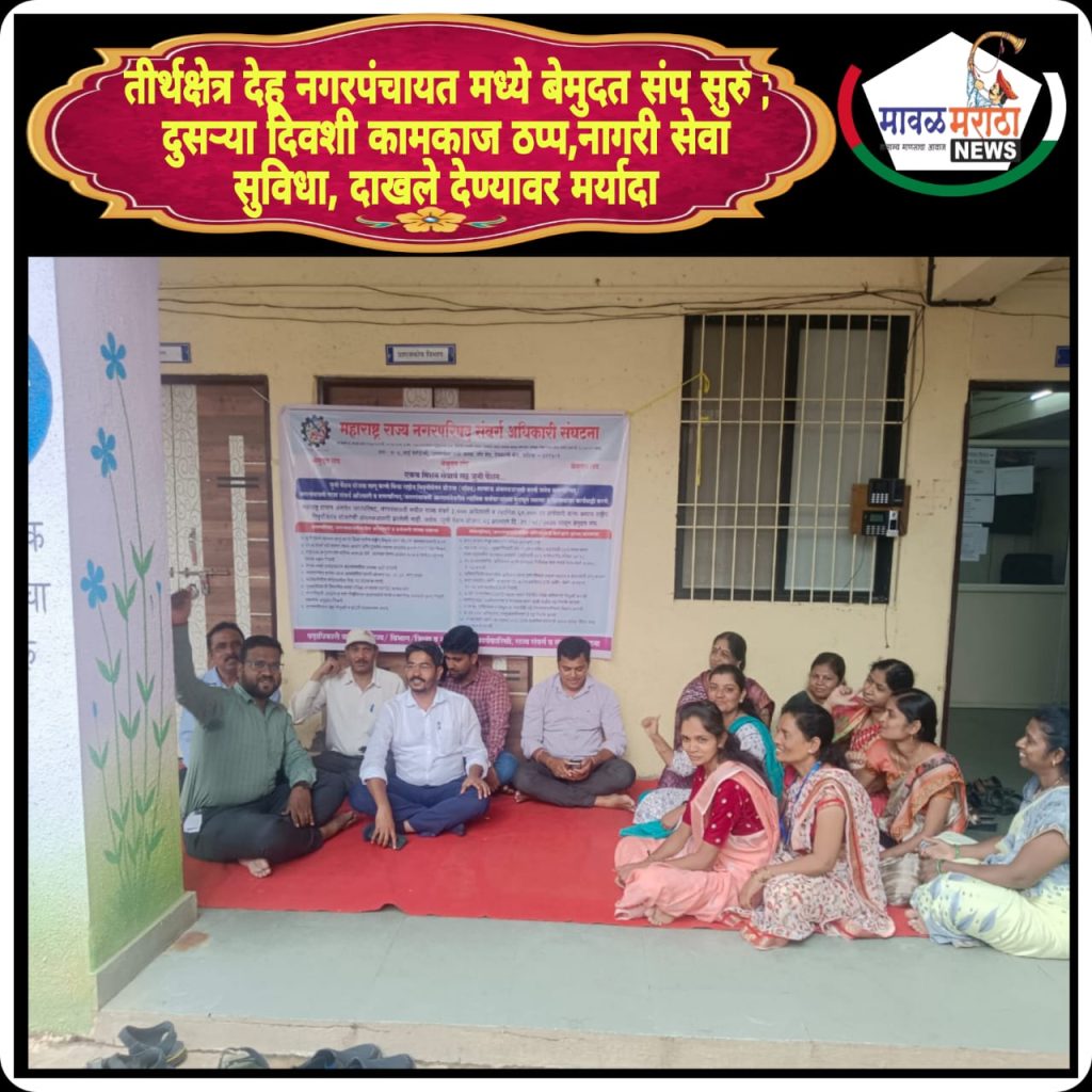 तीर्थक्षेत्र देहू नगरपंचायत मध्ये बेमुदत संप सुरु ; दुसऱ्या दिवशी कामकाज ठप्प,नागरी सेवा सुविधा, दाखले देण्यावर मर्यादा