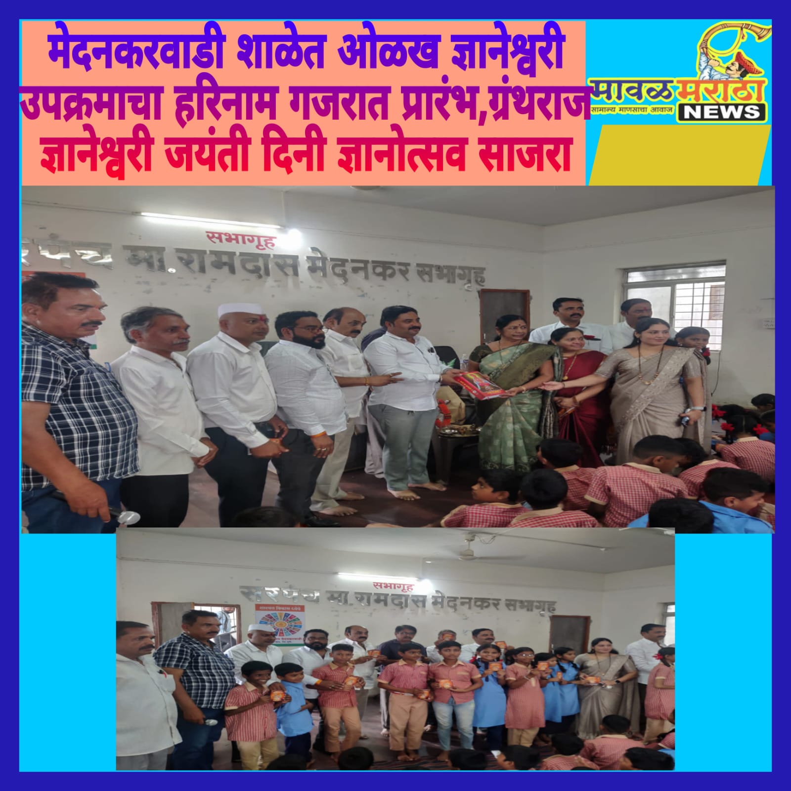 मेदनकरवाडी शाळेत ओळख ज्ञानेश्वरी उपक्रमाचा हरिनाम गजरात प्रारंभ,ग्रंथराज ज्ञानेश्वरी जयंती दिनी ज्ञानोत्सव साजरा