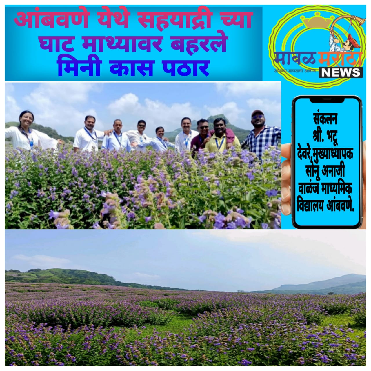 मावळ मराठा न्युज :-आंबावणे,सातारा शहराच्या पश्चिमेस २५ किलोमीटर अंतरावर जगप्रसिद्ध कास पठार आहे. त्या ठिकाणी रान हळद, आभाळी, भारंगी, सीतेची आसवे, तेरडा, सोनकी, गेंद, निसर्डी, जरतारी, दीपकाडी, निळकंनी, रानजिरं, या प्रजातीची रंगीबेरंगी फूल झाडे जुलै ते सप्टेंबर महिन्यात बहरतात. हे सृष्टी चे नैसर्गिक सौंदर्य पाहण्यासाठी पर्यटक मोठया संख्येने तिथे जातात. निसर्गाचा आनंद लुटतात.मुबंई – पुण्यातील पर्यटकासाठी अगदी तशीच पर्वनी लोणावळा पासून अंबी व्ह्याली रोडवर सहयाद्री च्या घाटमाथ्यावरील पठारावर लोणावळा पासून १५ किलोमीटर अंतरावर सौंदर्याने नटलेली आहे.राखीव वनाच्या जवळ पास २०० ते ३०० एकर परिसरात या वर्षी कारवी चा प्रकार असलेली स्थानिक” खराळा “नावाची निळसर रंगाची फूलझाडे अवतरली आहेत. त्यांची उंची २ ते ४ फूट आहे. अगदी तशीच निळ्या रंगाची फूल असणारी खरी कारवी याच परिसरात आहे. वाळल्या नंतर ग्रामीण भागात कारवी चा सरपंणासाठी वापर होत असतो.खऱ्या कारवी ची उंची ५ ते १० फूट एव्हडी असते. या परिसरात दरवर्षी बहरणारी सोनकी नावाने ओळखली जाणारी व भरपूर प्रमाणात आढळणारी पिवळ्या रंगाची फूल झाडे मोठया प्रमाणात आढळते.त्याशिवाय तेरडा ( गंगागोवर ),मिकी माउस, निसुर्डी, व गौरी गणपतीला वापरतात ती शिंदलवण (चोळ्याची फुल ) अश्या अनेक फूलझाडांच्या प्रजाती येथे आहेत..शेतीच्या व इतर धार्मिक विधी साठी या फूल झाडांना महत्व आहे.(झाल असं या वर्षी १५ सप्टेंबर पासून खराळा या निळ्या फूलांचा बहार सुरू झाला. हे फारसे कुणाला माहित नव्हते.सोनू अनाजी वाळंज माध्यमिक विद्यालय आंबवणे शाळेने शाळेपासून 7 किलोमीटर अंतर असलेल्या या ठिकाणी 19 सप्टेंबर ला पावसाळी सहलीचे आयोजन केले. आणि फूलांनी अच्छादन केलेल्या या निसर्गाचा व तेथील सौंदर्याचा मनमुराद आनंद लुटला.शिक्षकांनी व विद्यार्थ्यांनी सर्वच सोशल मीडियाद्वारे या ठिकाणाची नव्याने जगाला ओळख करून दिली. अनेकांनी फोन करून ठिकाणाबद्दल जाणून घेतले. आज हजारो पर्यटक येथे येत आहेत. आज मिनी कास पठार म्हणून सर्व दूर ओळख निर्माण झाली. नावीन्य पूर्ण उपक्रमाबाबत कोराई गड शिक्षण संस्थेचे संस्थापक अध्यक्ष मा नंदकुमार वाळंज यांनी कौतुक केले.)विस्तीर्ण पसरलेला हा निसर्गाचा अनमोल ठेवा सप्टेंबर महिन्यात अनुभवता येतो. याच्या सुंदरते चा कालावधी 21 ते 30 दिवसांचा असतो. ऍम्ब्ये व्हॅली ला जाणाऱ्या रस्त्यालगत खराळा बहरलेली दिसते.त्यासाठी स्वच्छ सूर्यप्रकाश असल्यास अधिक उत्तम असते. परंतु टायगर पॉईंट व घुसाळगाव या परिसरात दाट धुके सतत निर्माण होते. त्यामुळे अडचणी निर्माण होतात. हे प्रत्यक्ष दर्शी हवामानावर अवलंबून असते. प्रत्येकाने आनंद घ्यावा.मात्र येणाऱ्या पर्यटकां