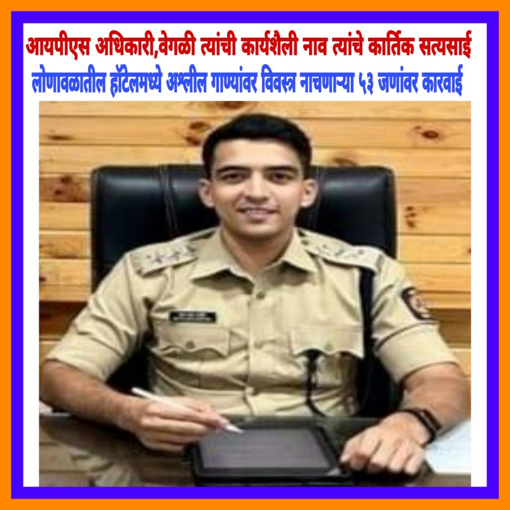 आय पी एस अधिकारी,वेगळी त्यांची कार्यशैली नाव त्यांचे कार्तिक सत्य साई,लोणावळातील हॉटेलमध्ये अश्लील गाण्यांवर विवस्त्र नाचणाऱ्या ५३ जणांवर कारवाई
