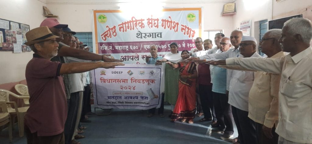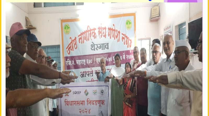 गणेशनगर,जेष्ट नागरिक संघाच्या वतीने घोषणा व शपथ देऊन मतदान जनजागृती