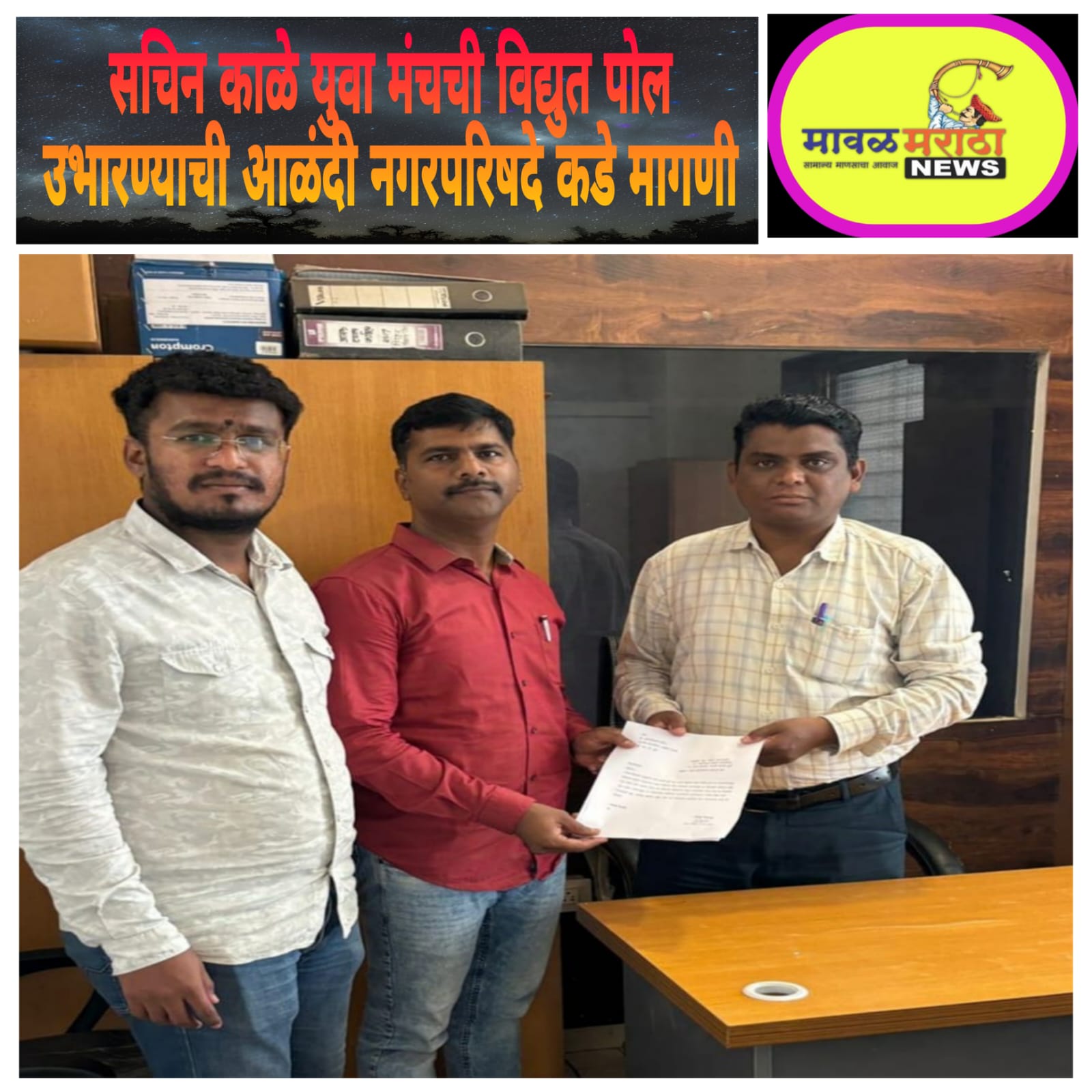 सचिन काळे युवा मंचची विद्युत पोल उभारण्याची आळंदी नगरपरिषदे कडे मागणी